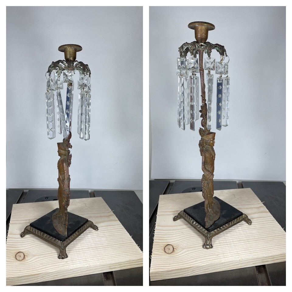 cornelius co candle holder antique brass w/ Hanging Crystals.