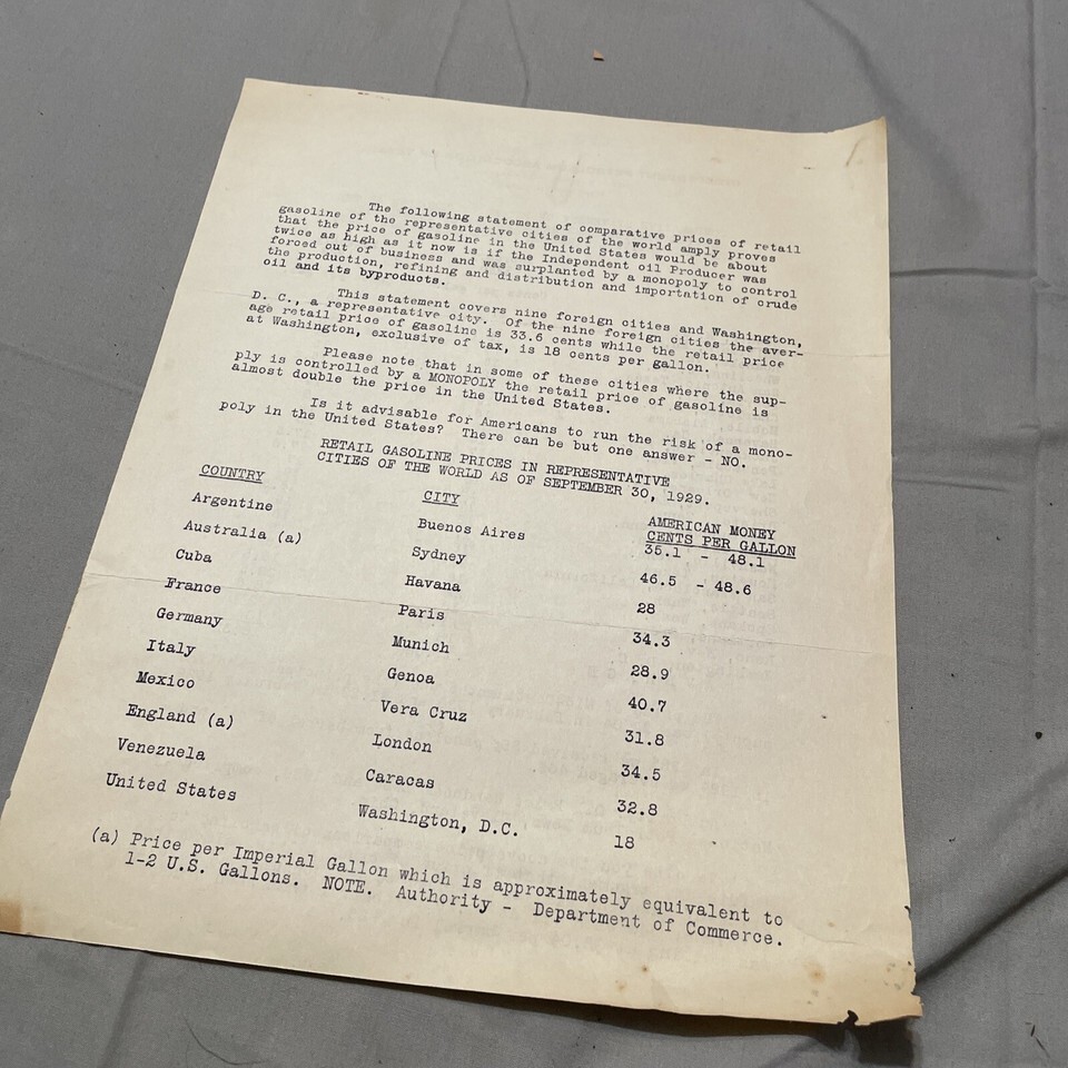 Independent Petroleum Association Of Texas 1929 Statement On Gas Prices.