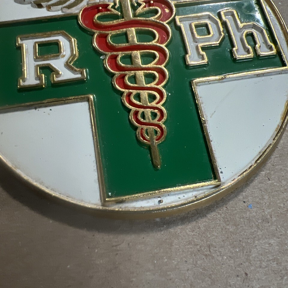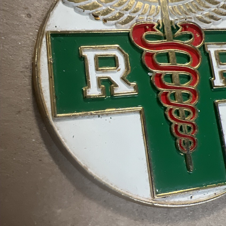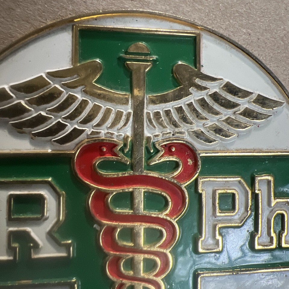 VINTAGE AUTOMOBILE EMBLEM LICENSE PLATE TOPPER RX PHARMACY DRUGS MEDICAL RPH