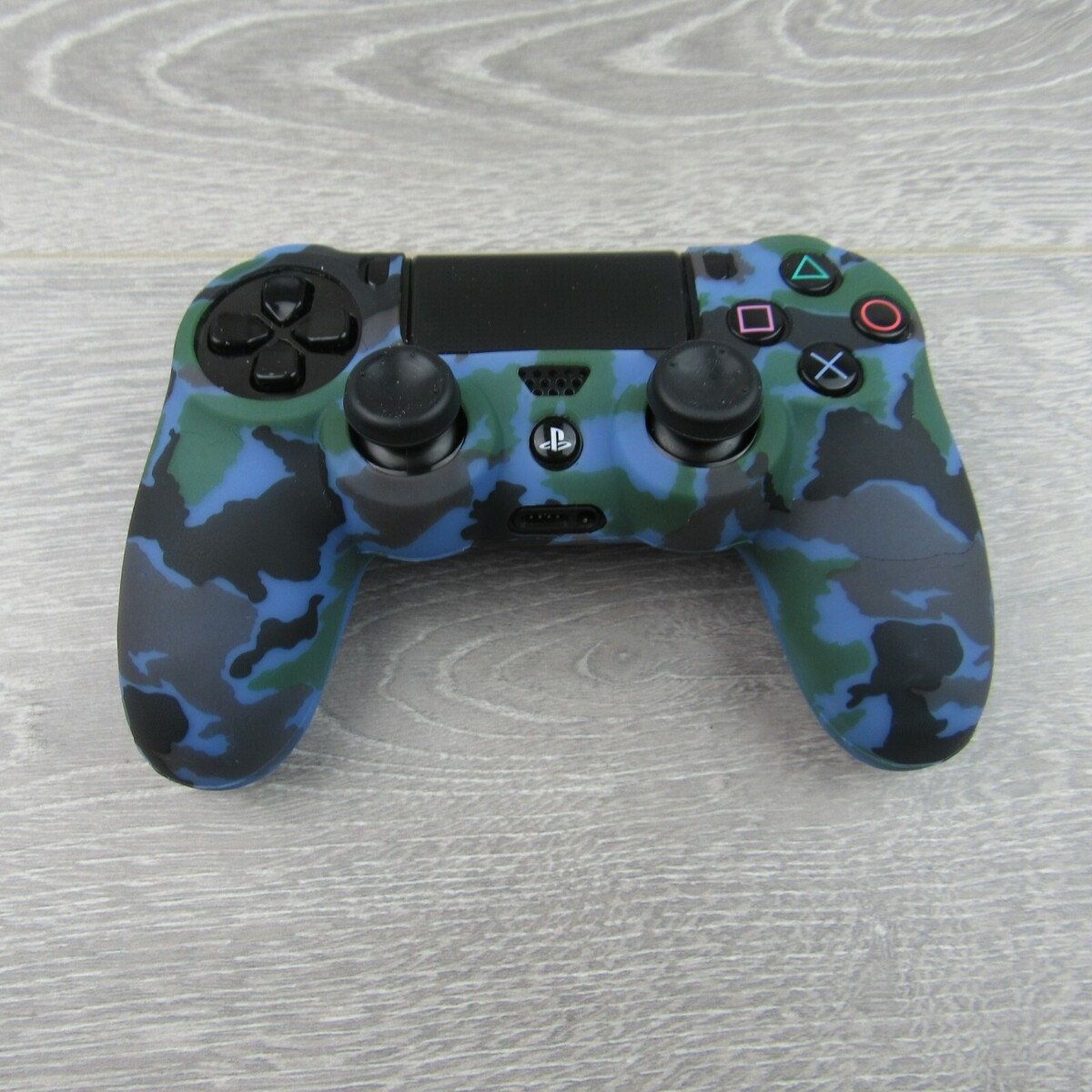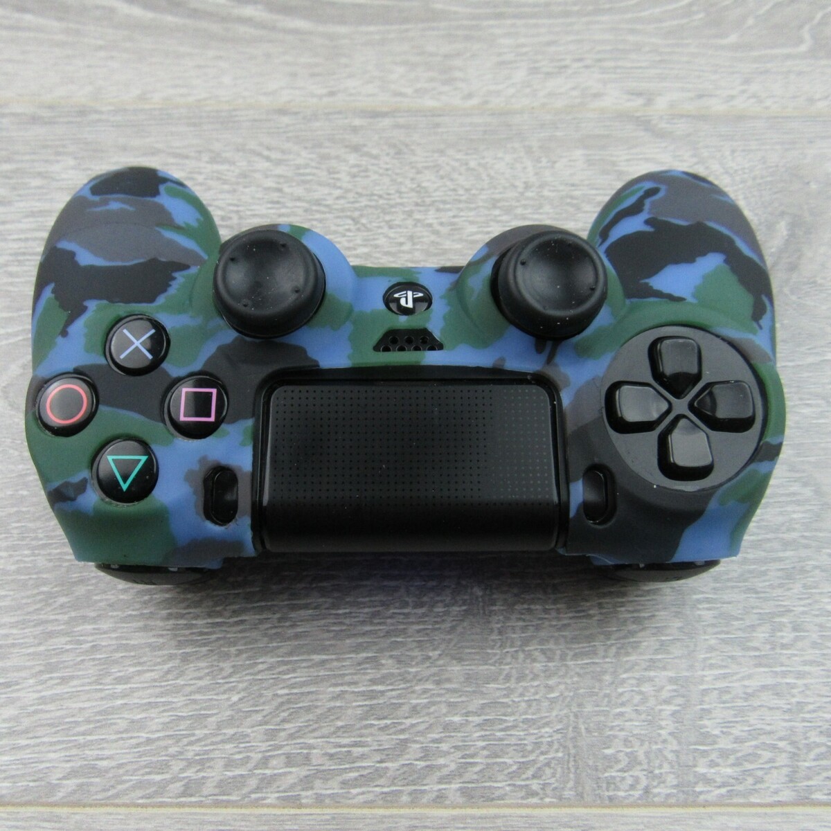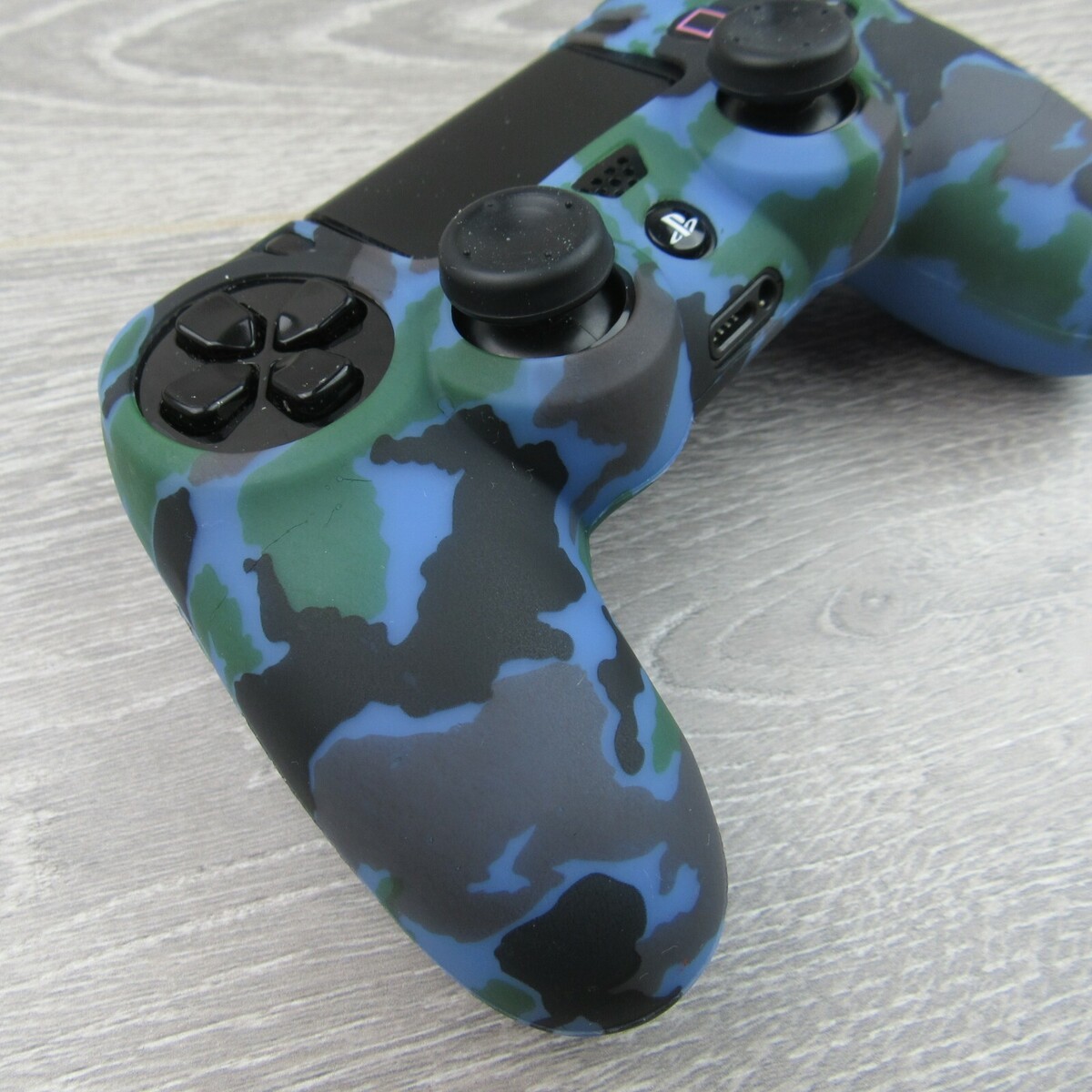 Silicone Blue Camo Grip Soft Shell + (8) Multi Thumb Caps For PS4 Controller