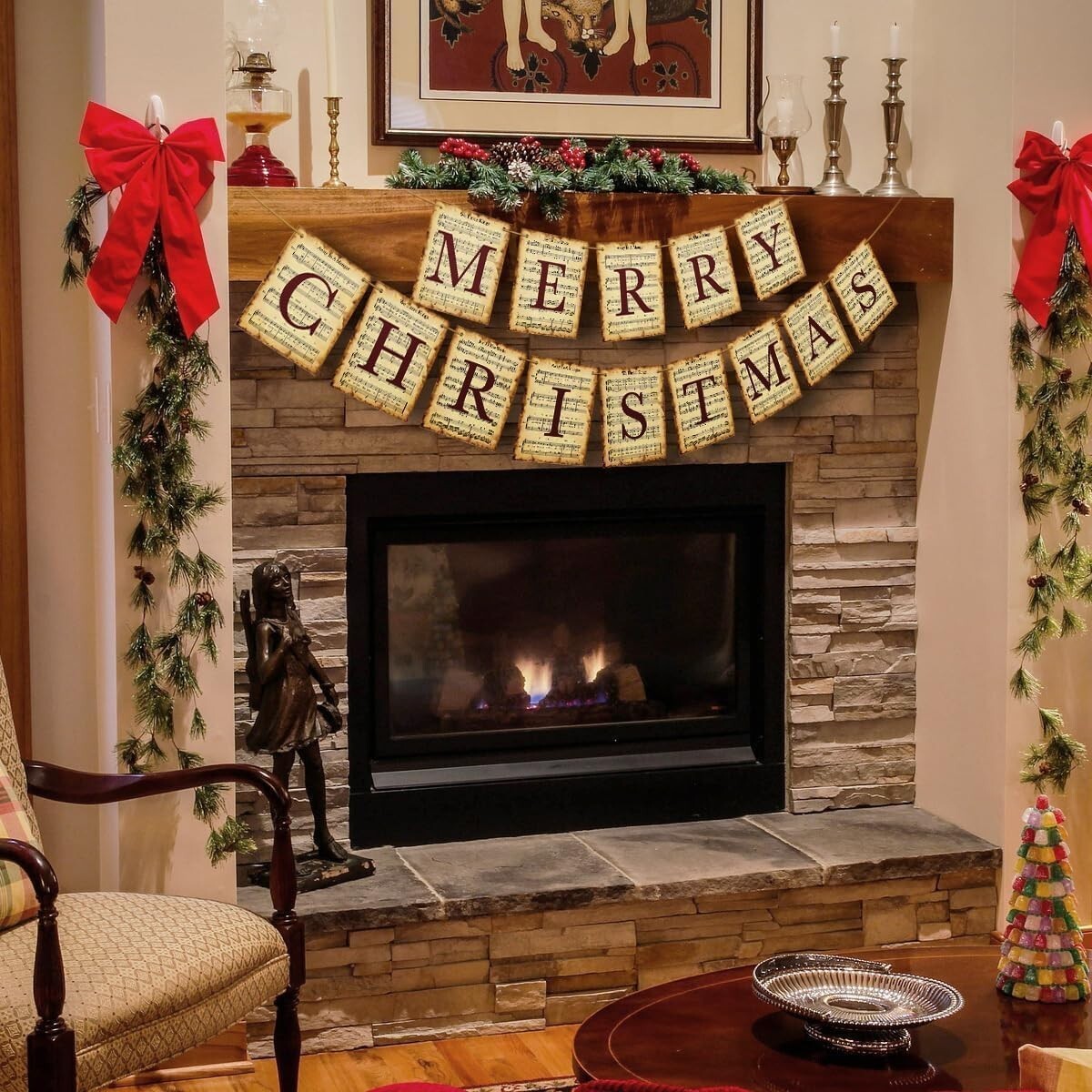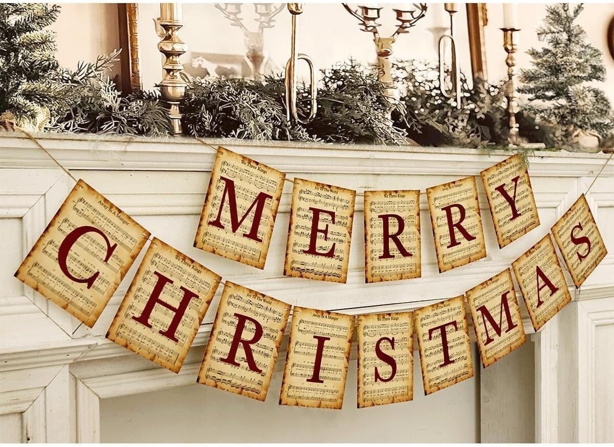 Garland Christmas Decorations Indoor, Vintage Hymns Carols Merry Christmas Banne
