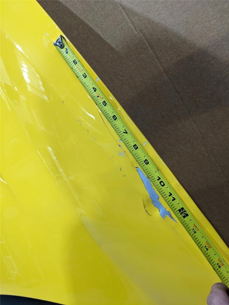 This hood will come with some scratching and paint chipping approximating 13 inches in length on the front of the panel as shown in images 2 3 and some paint chipping and minor scratching on the back of the panel as well shown in image 4. Please reference the images below and part number provided to insure that you're ordering the correct hood for your vehicle.