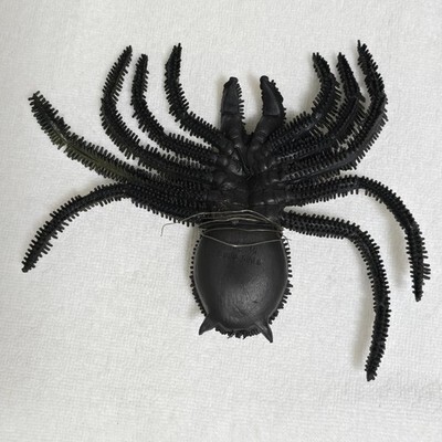 Vintage 80s Hanging Giant Rubber Spider Monster Toy Decoration - Made in Hong Kong - Approximately 6.5" X 6"