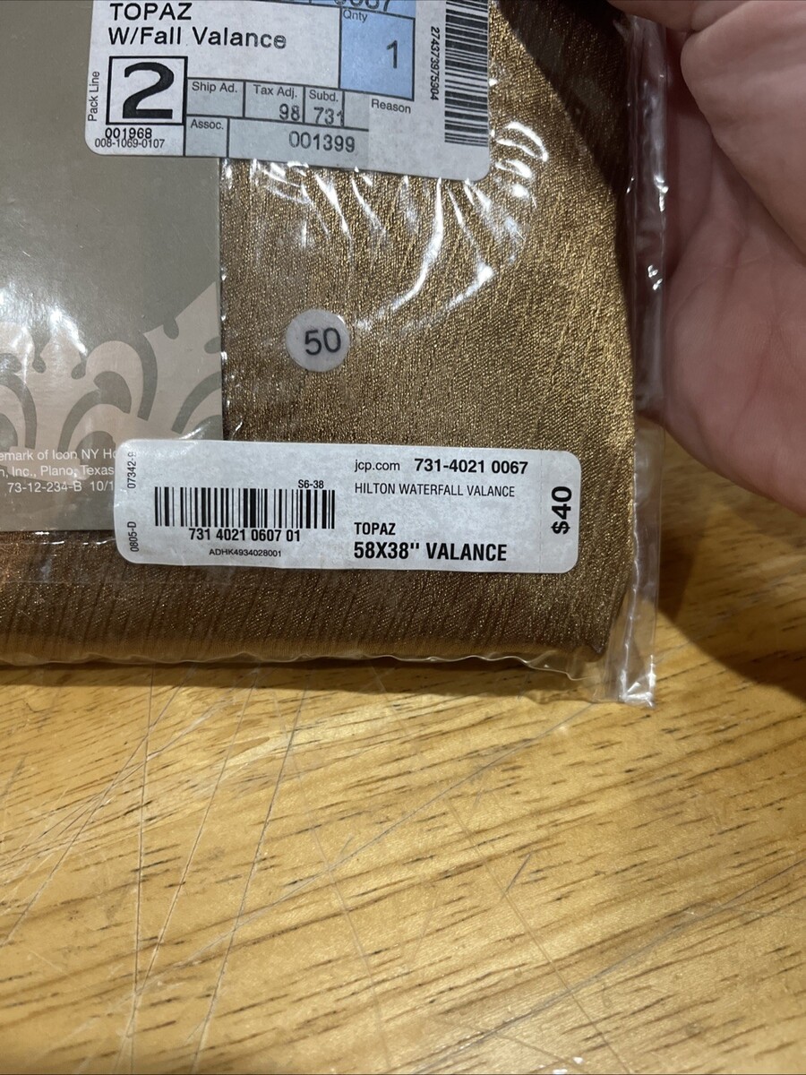 JCP Royal Velvet Hilton Waterfall Valance, Topaz Brown Rod Pocket 58"x 38" NWT