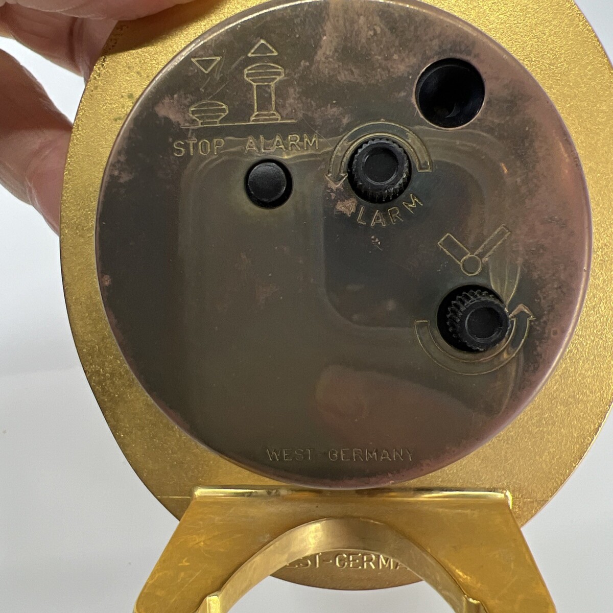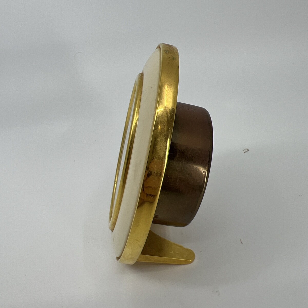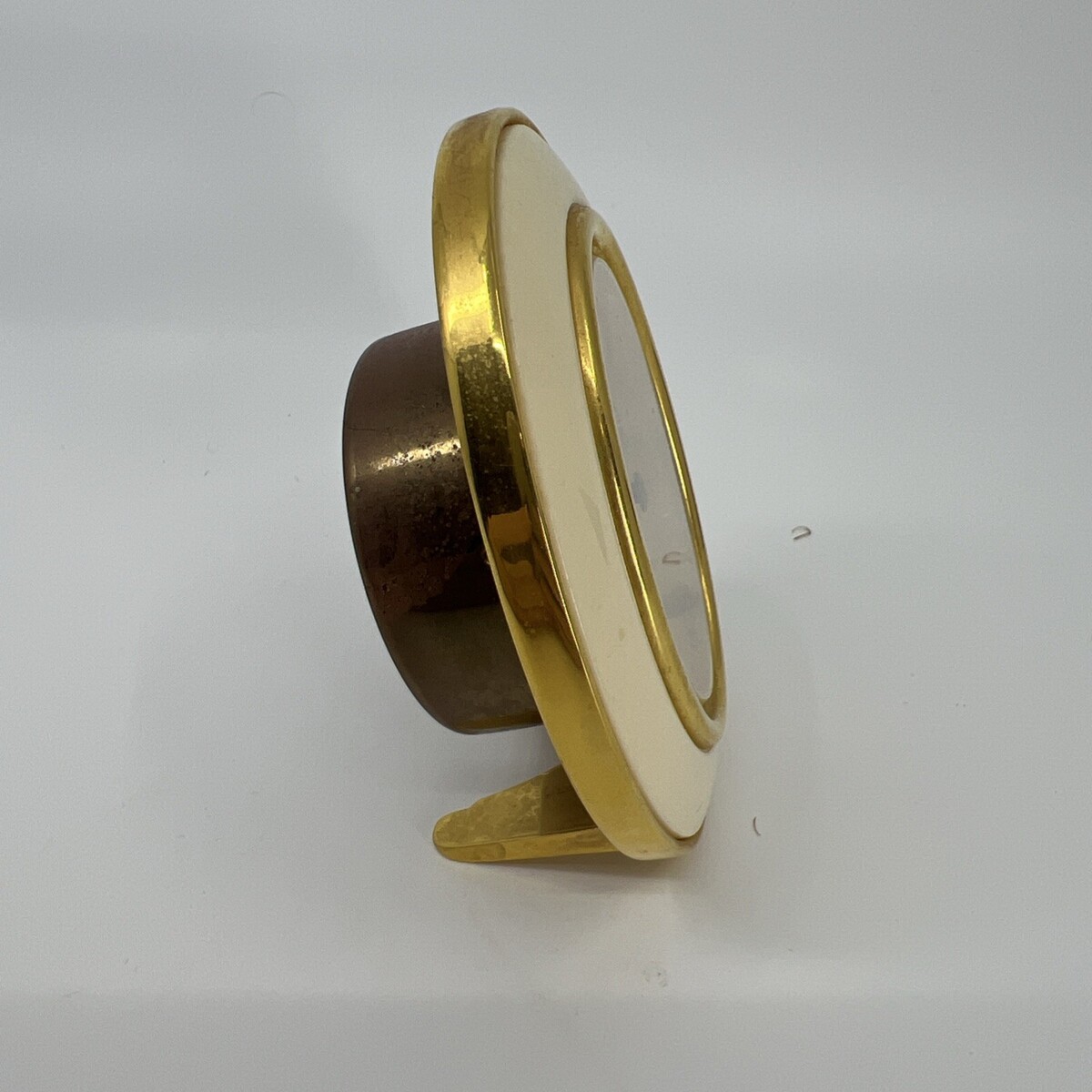 Vintage Gruen West Germany Brass Oval Ivory Gold Small Mantle Alarm Clock