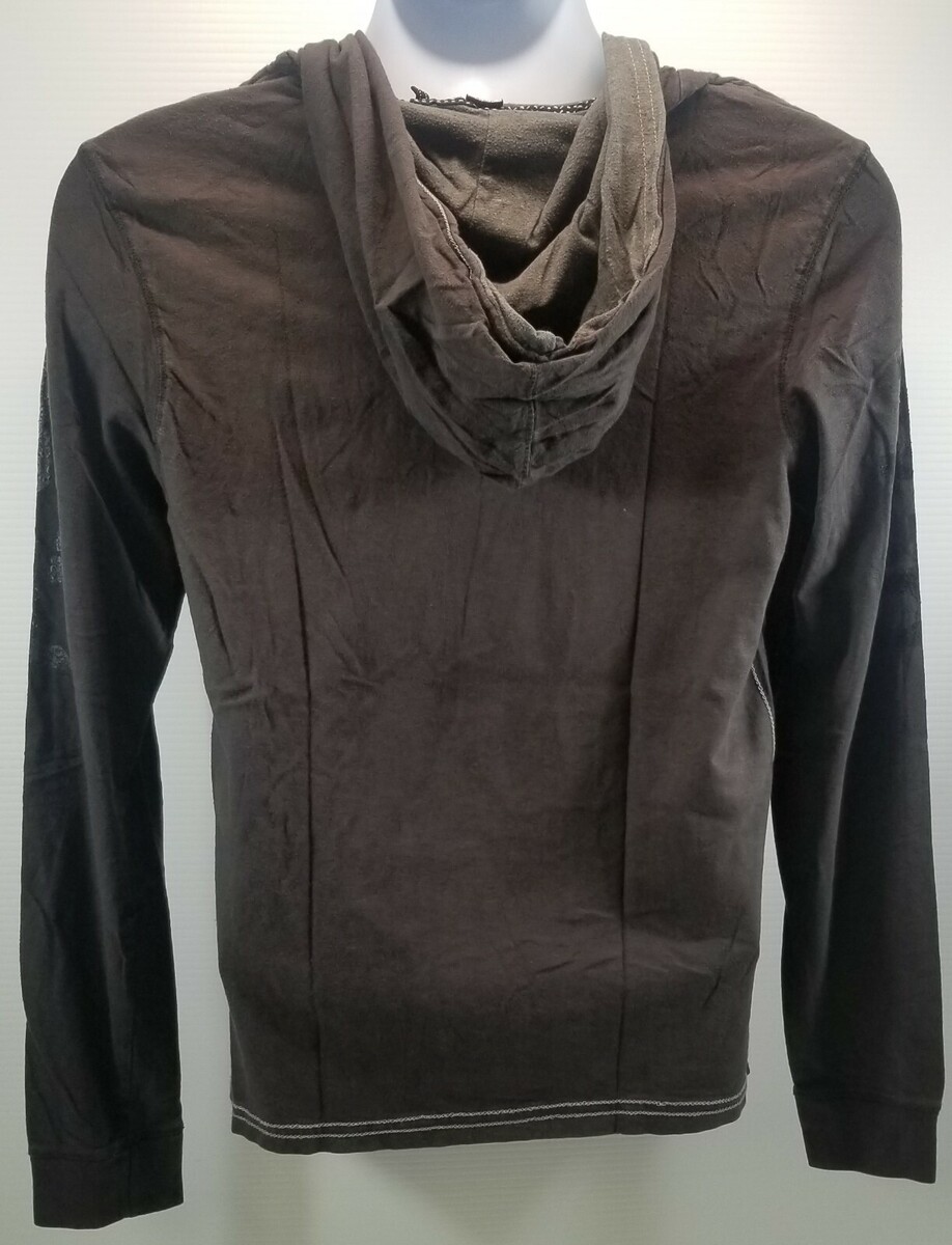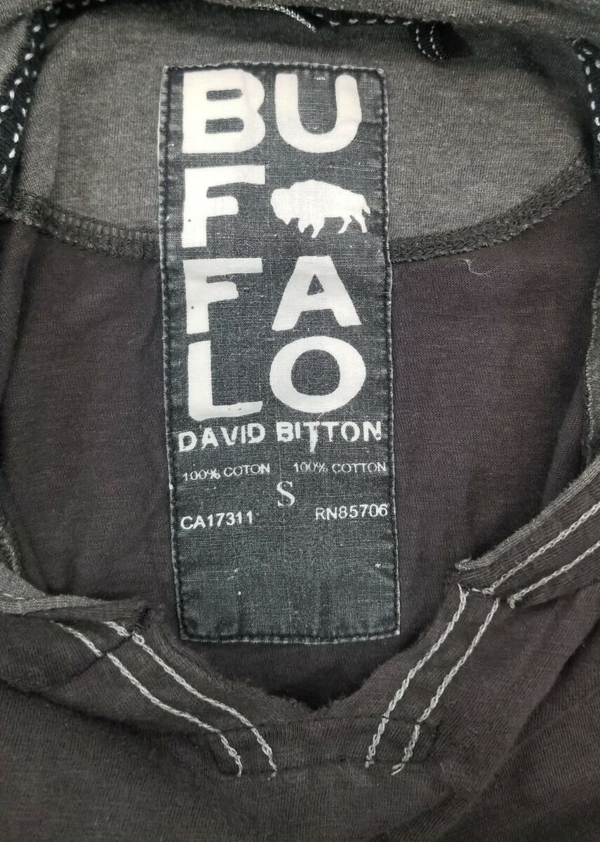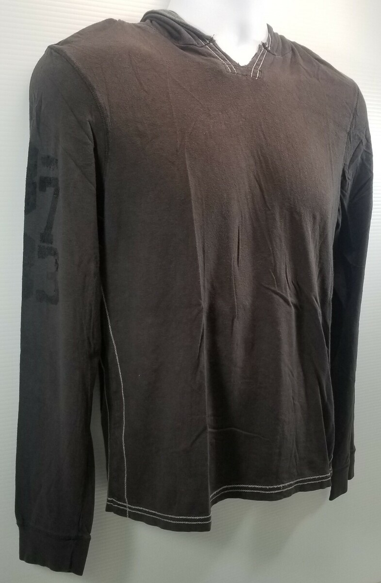 V)Buffalo David Bitton Pullover Long Sleeve Henley Cotton Hoodie Shirt Men Small
