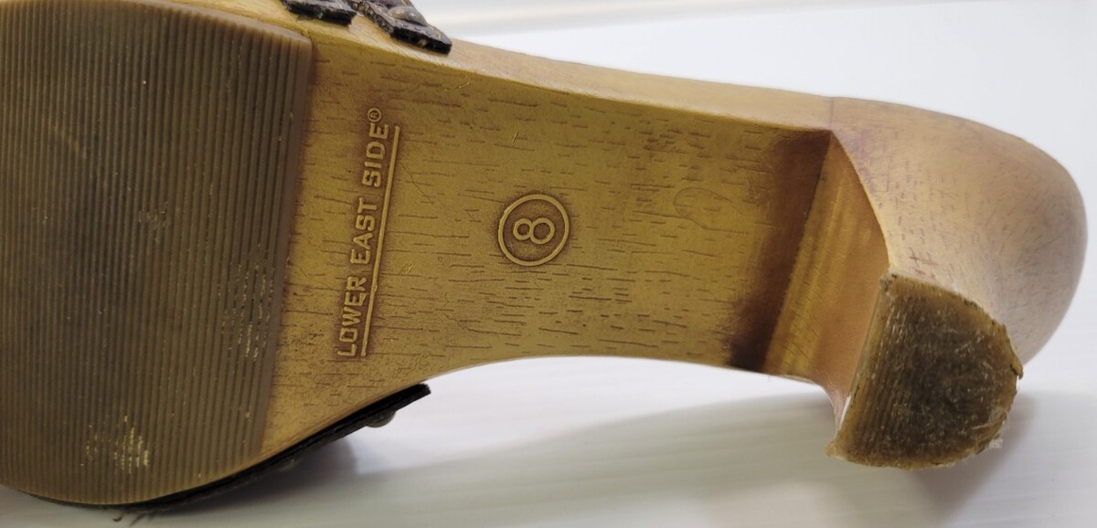 BG) Vintage Lower East Side Woman Wooden Heels Buckle Sandal Shoes Size 8