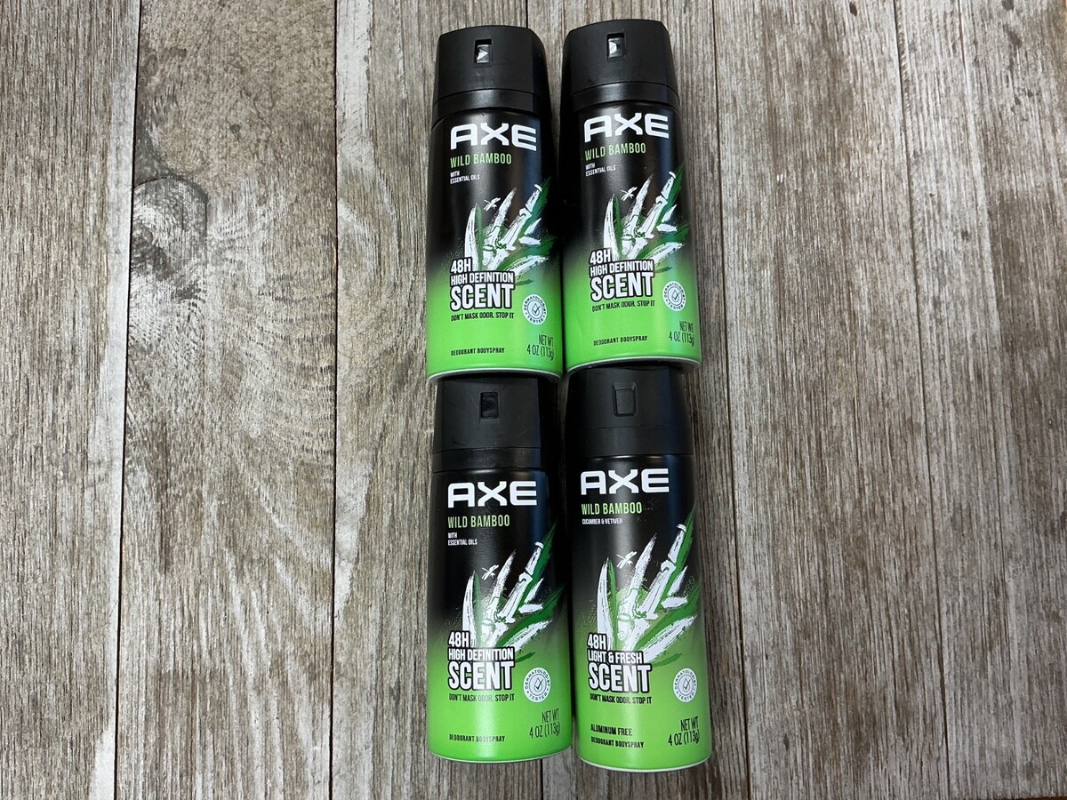 4 pack Axe Wild Bamboo 48H Deodorant Body Spray 4 oz Each