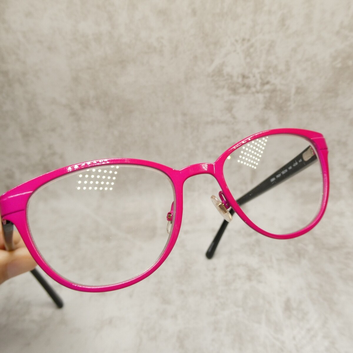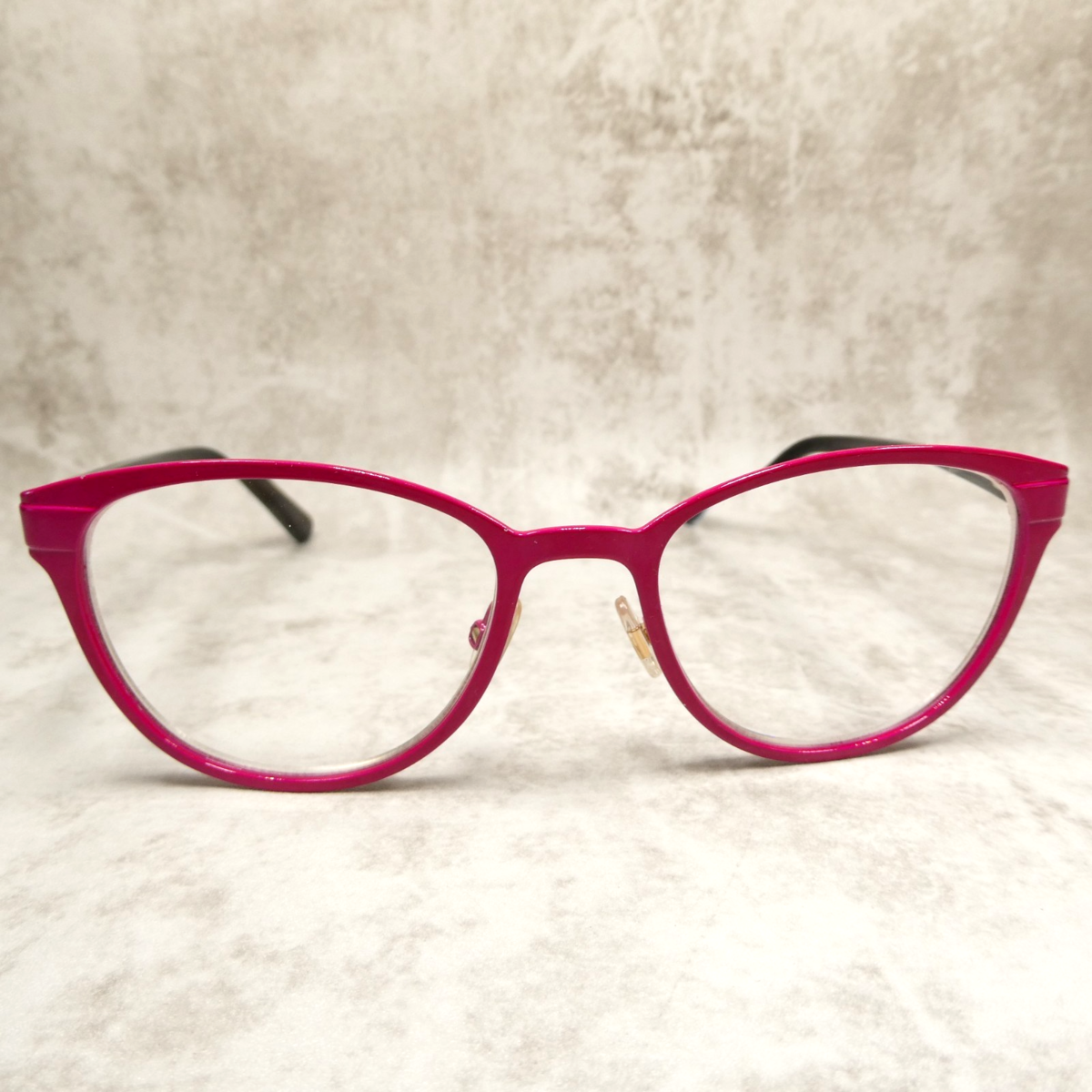 Matte fuchsia enamel metal frame.