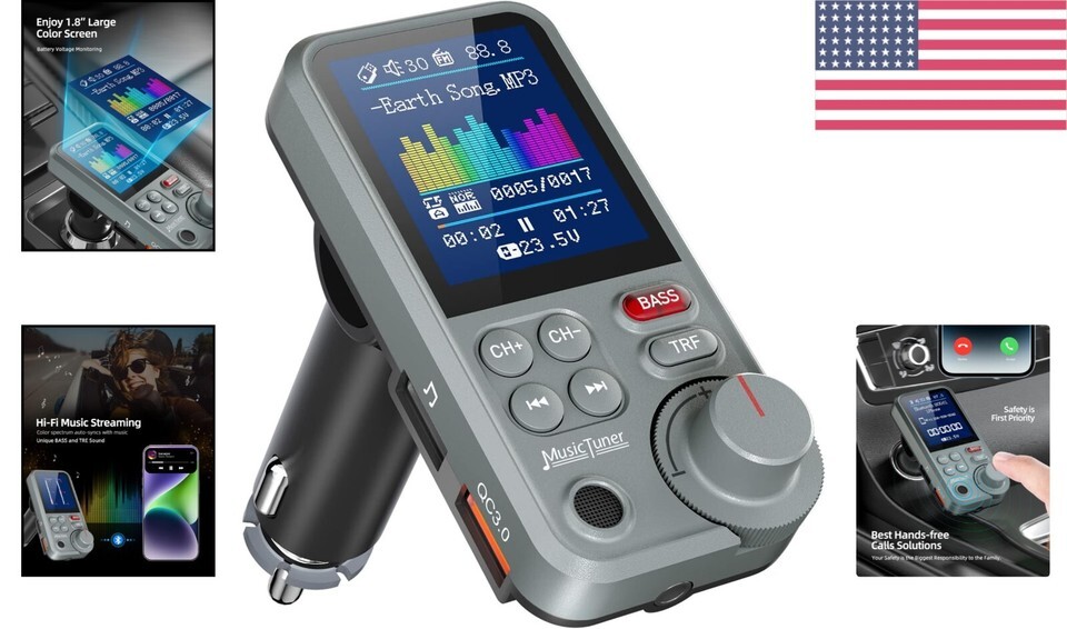 Transform your driving experience with this state-of-the-art Car Bluetooth FM Transmitter. The KM30 offers multifunctional solutions that ensure hands-free driving while seamlessly streaming your favorite music through your in-car stereo.