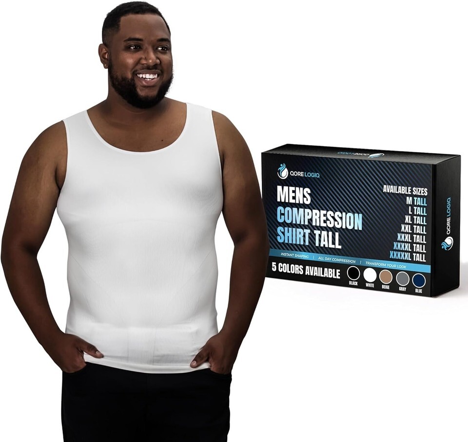 Mens X-Large White Compression Shirt - Tank Top Body Shaper for Confidence