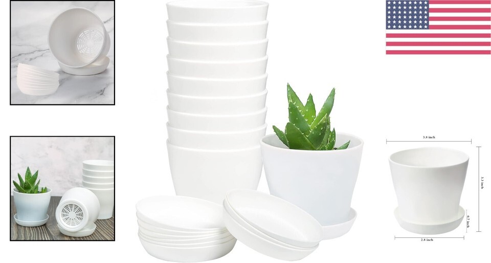 Set includes 10 elegant white flower pots with a caliber of 3.8 inches.