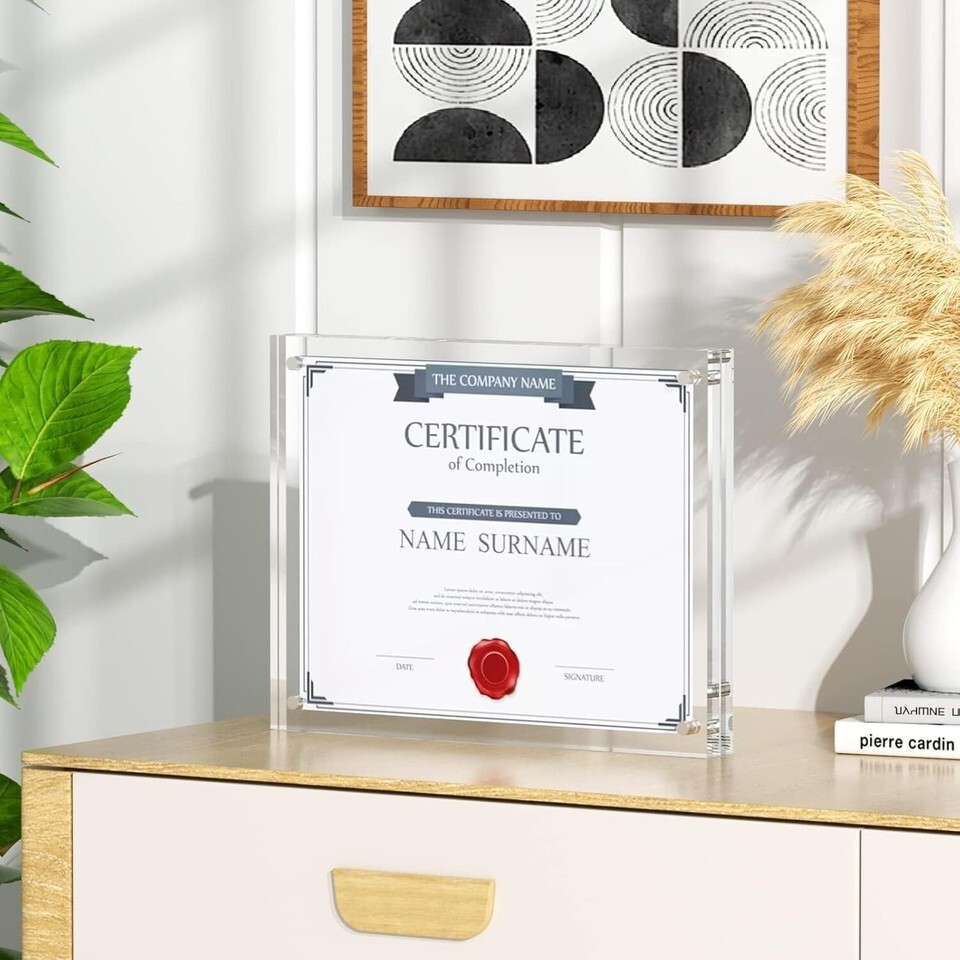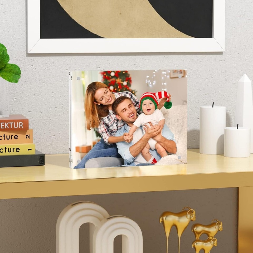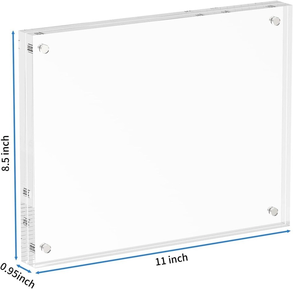 Features: Magnetic,Super clear material,20% thicker panels,Desktop display only,Cannot hang,8.5x11 inches,Floating effect,Easy to clean,Update picture easily,Single or double sided frame,UV resistant,Class A acrylic panel,Gift box package,Interchangeable mat