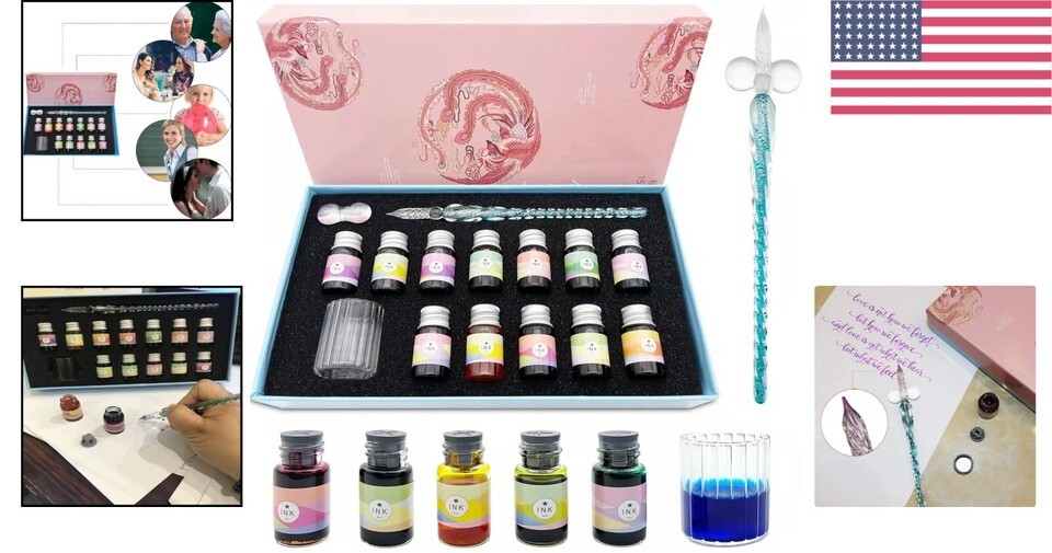 Luxury Glass Dip Pen Set with 12 Non-Toxic Inks - Ideal for Artists and Writers