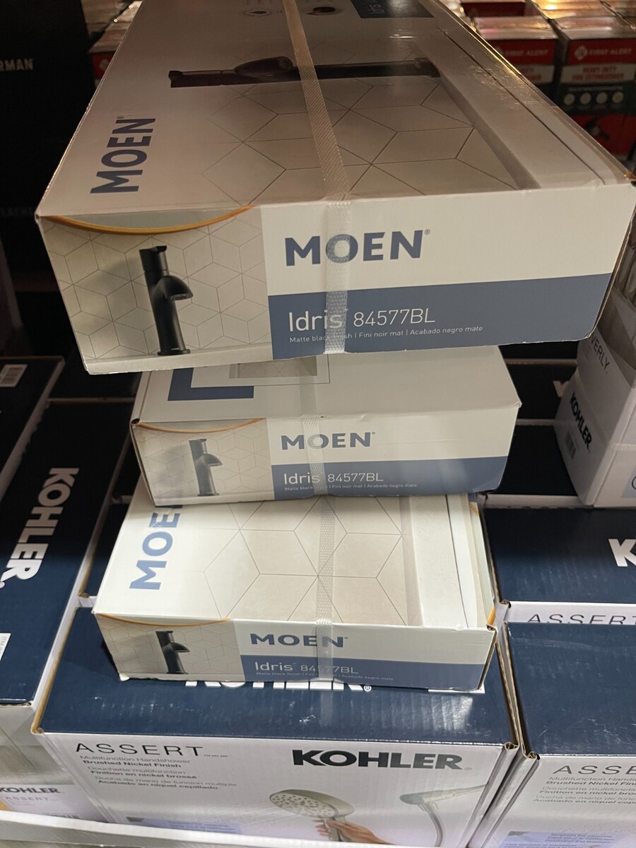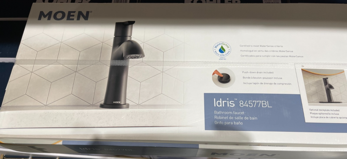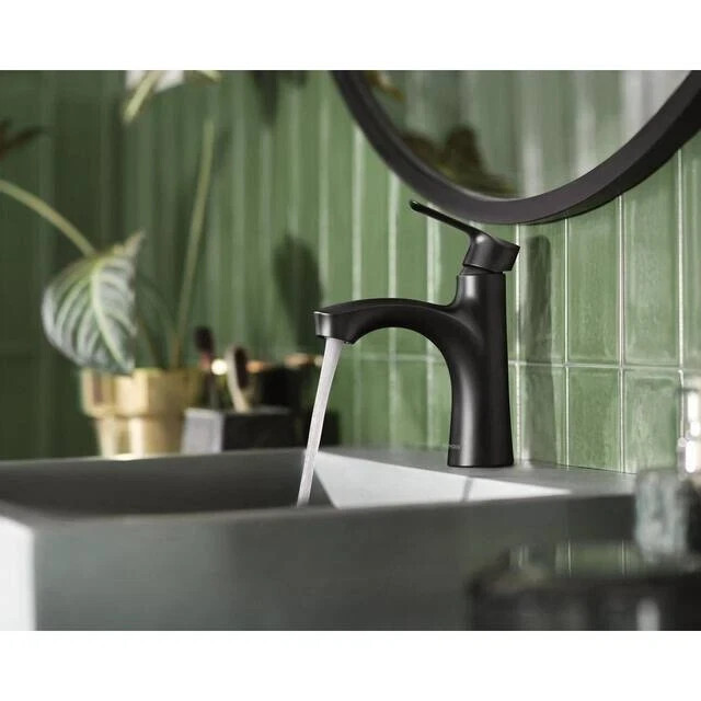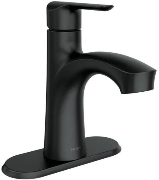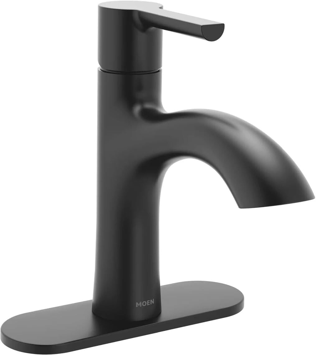 Moen Idris One-Handle Bathroom Faucet Push Down Drain 84577BL + Deckplate Matte Black