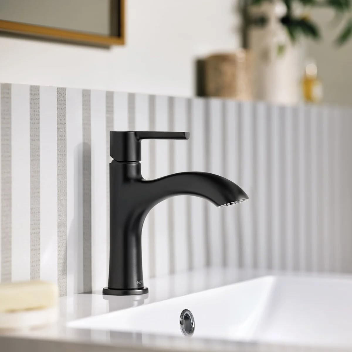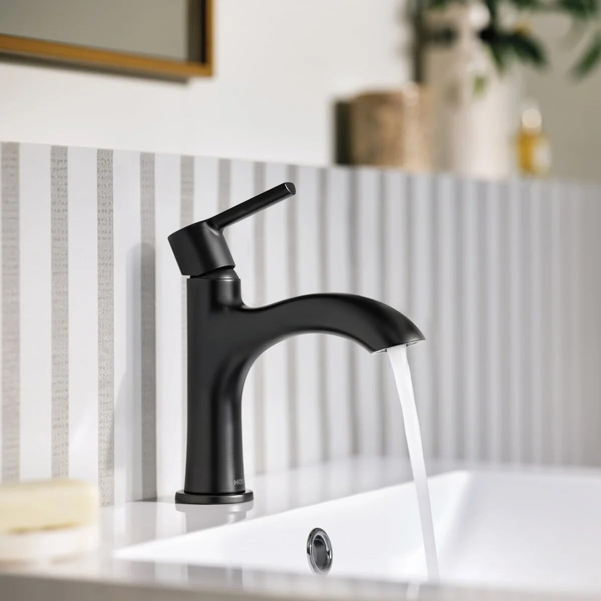 Moen Idris One-Handle Bathroom Faucet ? Modern Deck Mount with Push-Down Drain ? Optional 3-Hole Deckplate ? 1.2 GPM (Matte Black)
