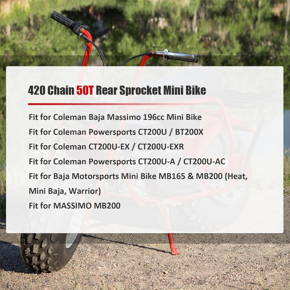 Upgrade 40/41/420 Chain 50 Tooth Rear Drive Sprocket Cog, 40mm Bore, for Coleman BT200X CT200U CT200U-EX, Baja Warrior, TrailMaster/Massimo MB165 MB200, Fits Predator 196/212cc 6.5hp