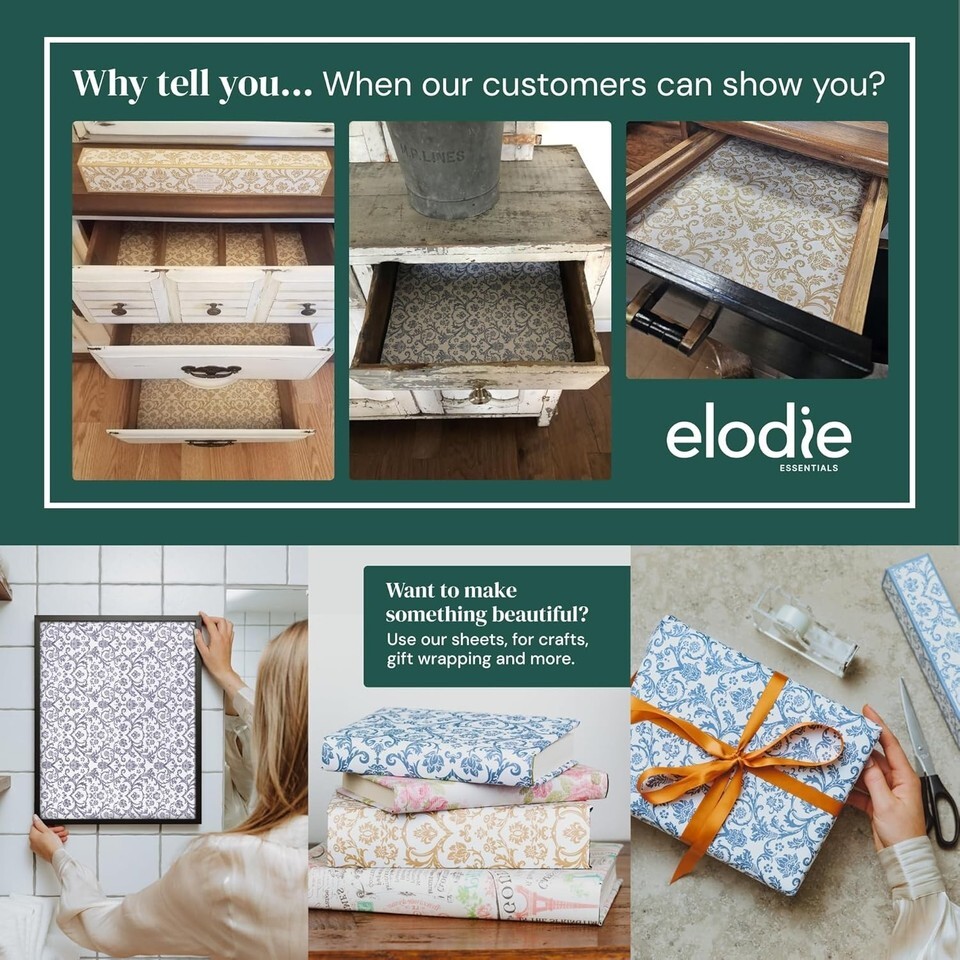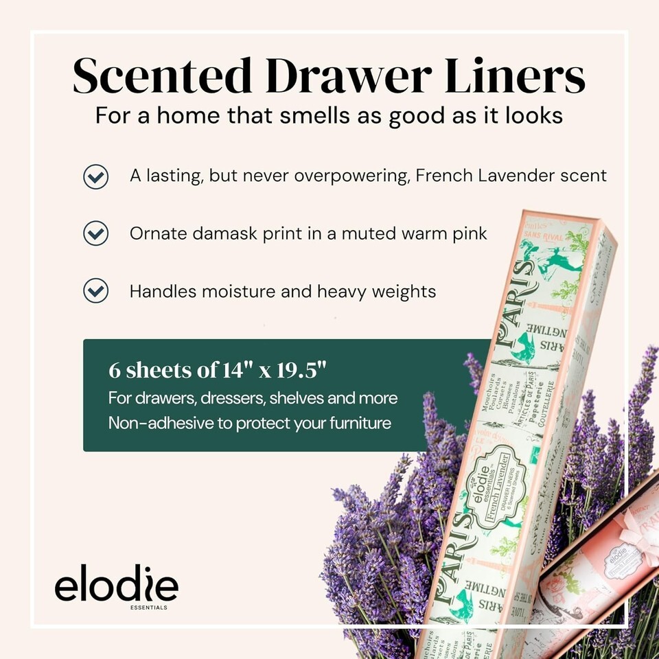 Immerse your home in elegance with Vintage Paris Scented Drawer Shelf Liners. Infused with French Lavender fragrance oils, these luxurious liners are designed to elevate your living space while adding a sophisticated touch with their beautiful damask design. Perfect for your bedroom dressers, bathroom drawers, closets, and pantries, they not only impress with their aesthetic but also provide a delightful, long-lasting aroma that keeps your clothes and linens inviting.