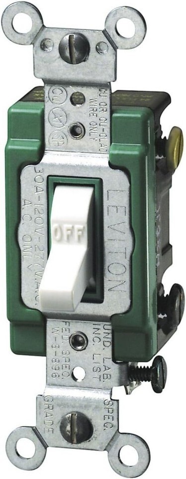 30A Double-Pole AC Quiet Switch 120/277V, Heavy Duty, Self Grounding, White, ...