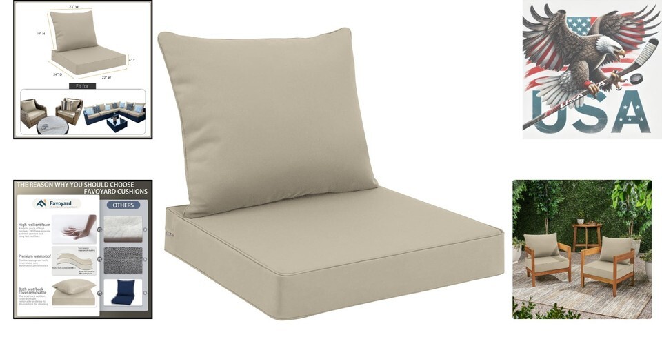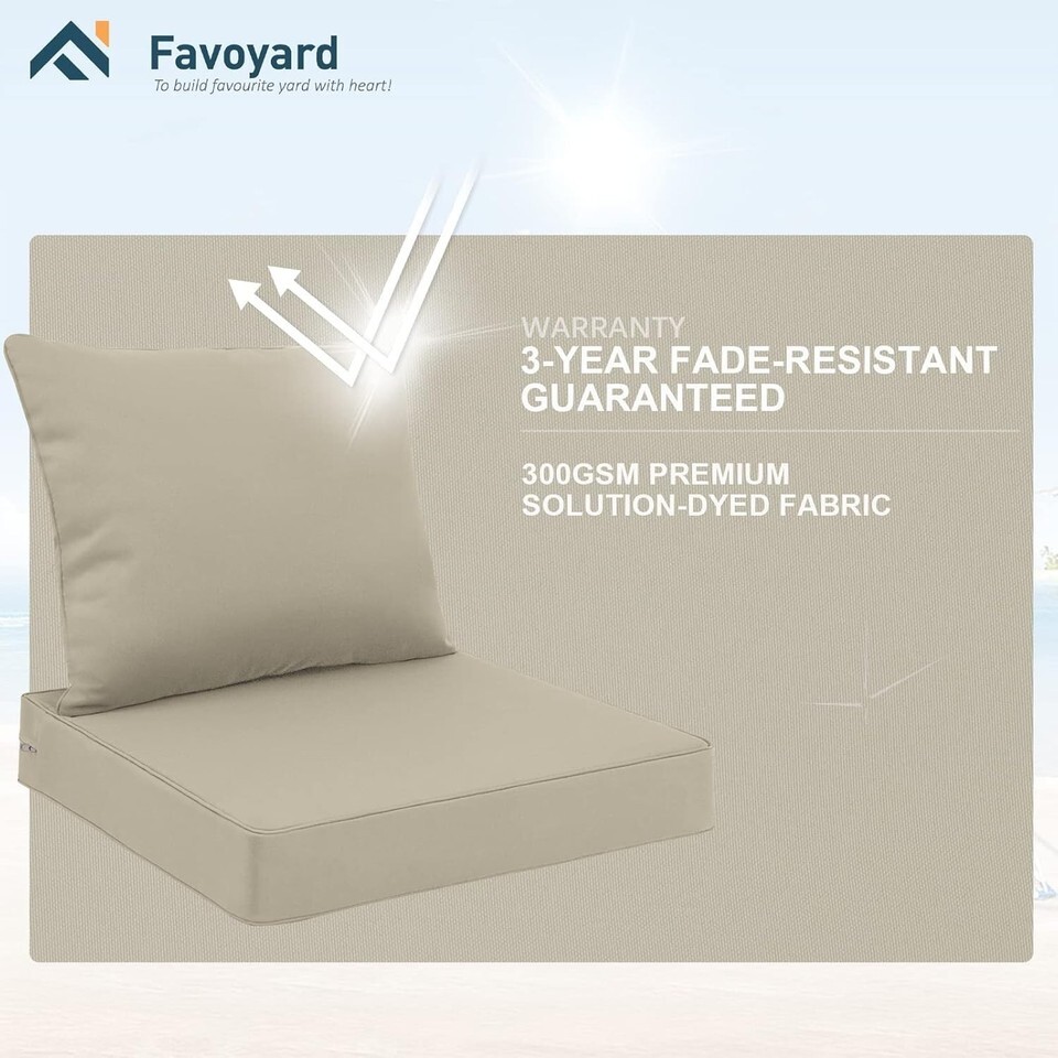 Outdoor Waterproof Fade-Resistant 22x24 Inch Patio Seat & Back Cushions with ...