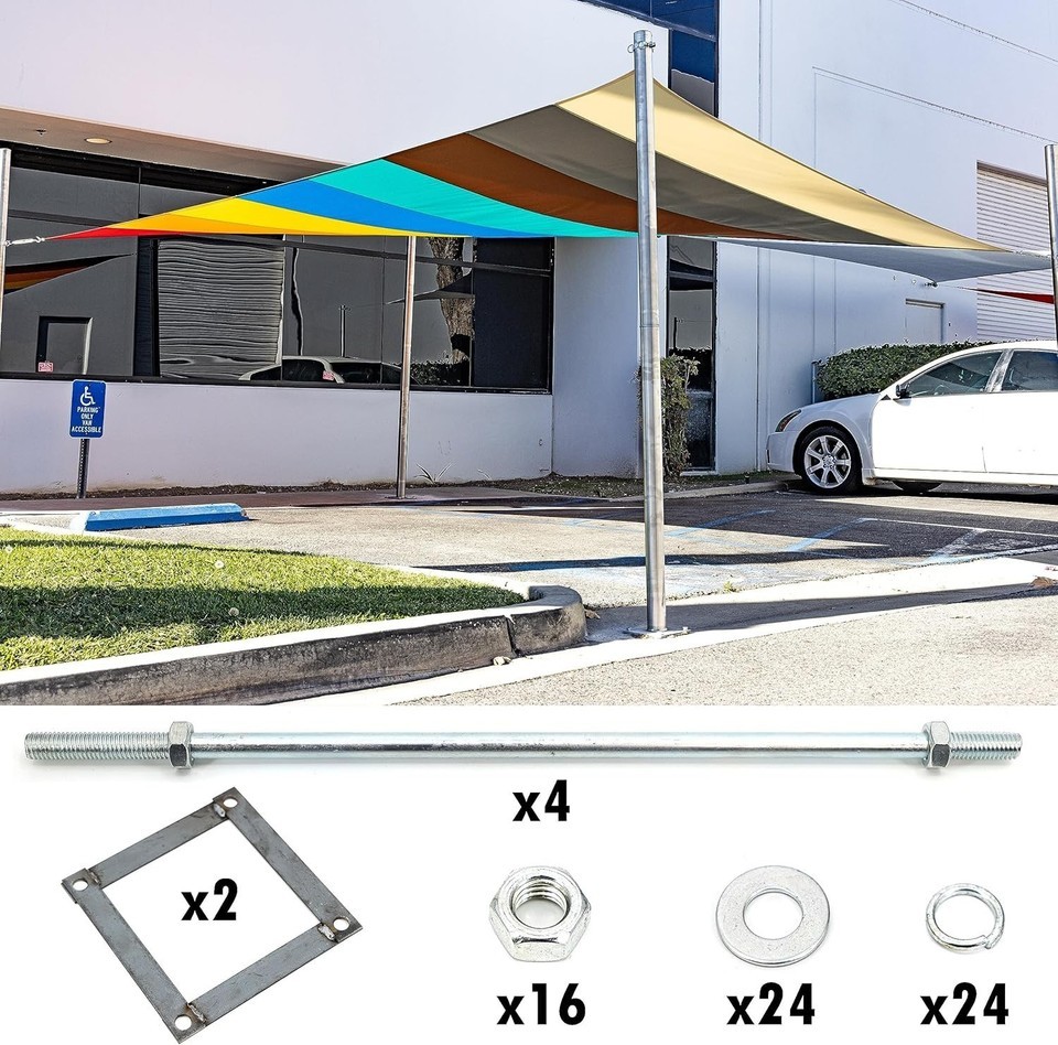 Heavy-Duty 15" Rebar Shade Sail Pole Base Frame Set - Easy Install, Concrete Anchor, Outdoor Patio Garden