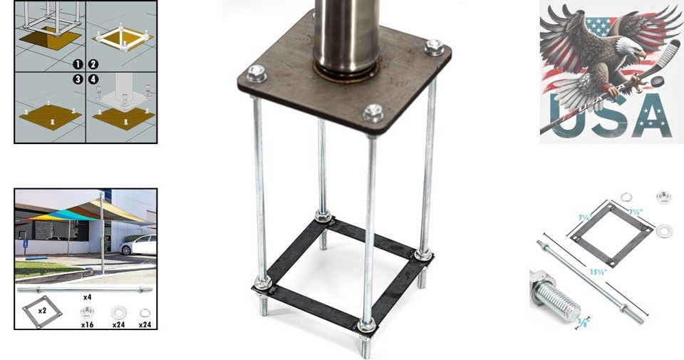 Heavy-Duty 15" Rebar Shade Sail Pole Base Frame Set - Easy Install, Concrete ...