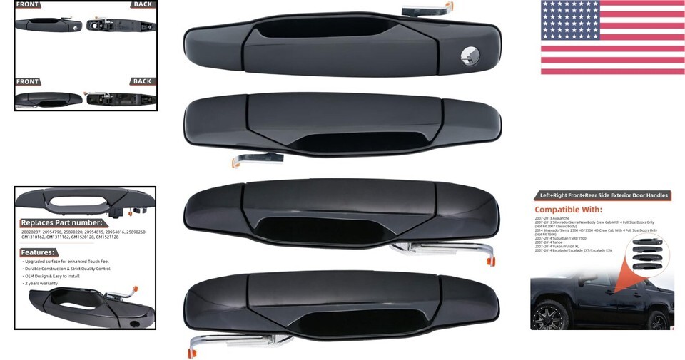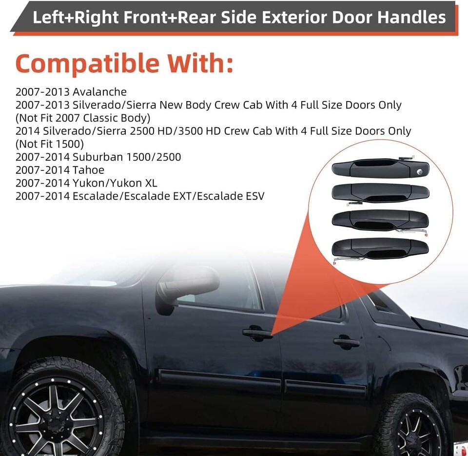 Complete Set of 4 Black Door Handles for Silverado/Avalanche/Suburban Models