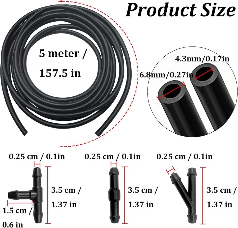 Quality: Crafted from high-quality rubber, our windshield washer hose kit is soft, flexible, and specifically designed for durability. Ensure a long-lasting performance that keeps your windshield sparkling clean.