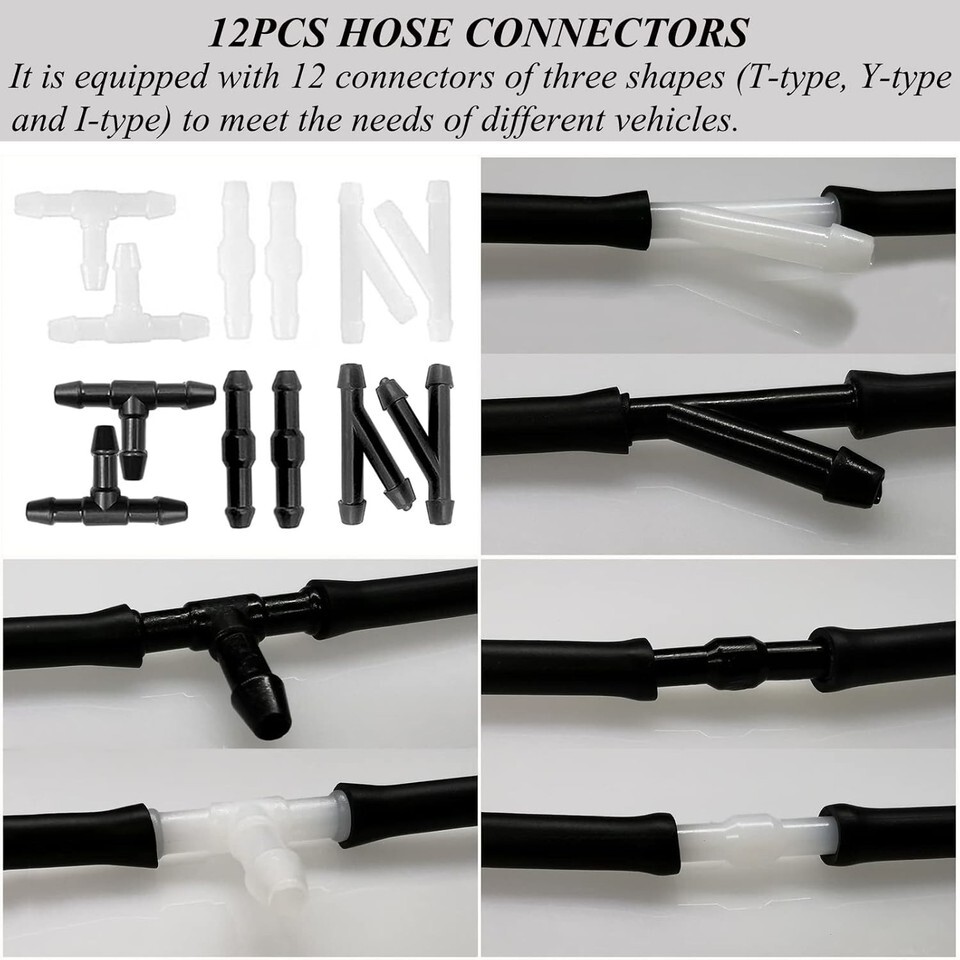 Universal Compatibility: This washer hose kit is designed for most windshield washer nozzles, making it an ideal solution for cars, SUVs, trucks, and more. Adaptable and efficient, it guarantees a clear view from your vehicle.