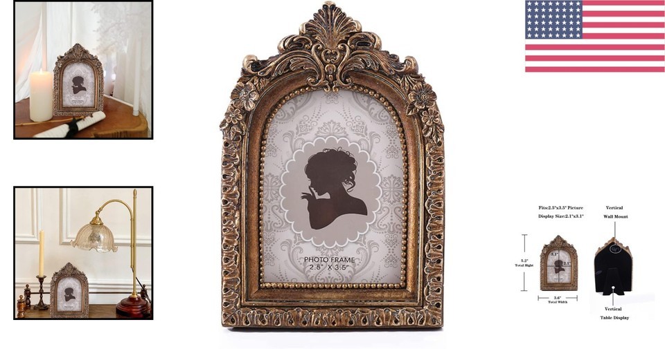 Vintage Mini 2.5x3.5 Picture Frame - Ornate Bronze Gold Décor for Any Occasion