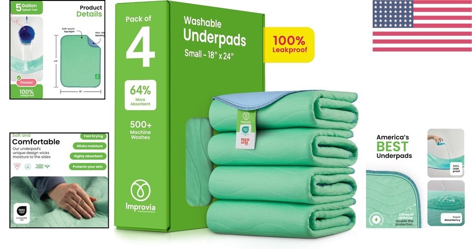 Pack of 4 Washable 18" x 24" Heavy Absorbency Incontinence Pads?Ultimate Protection
