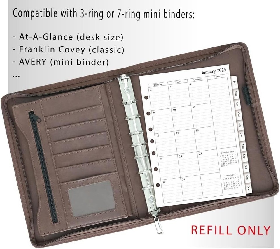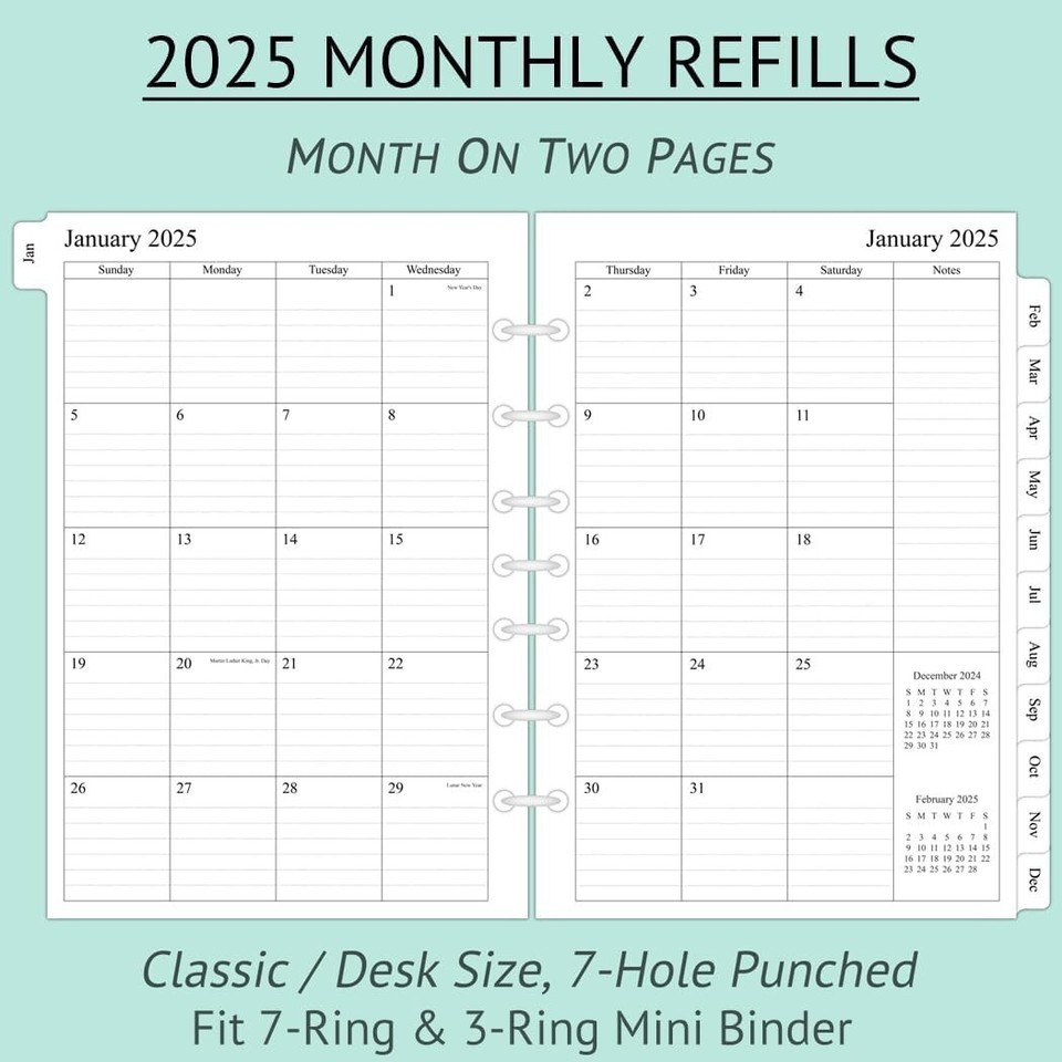 Coated Tab Monthly Planner Refills for 3-Ring & 7-Ring Binders – 2025 Edition