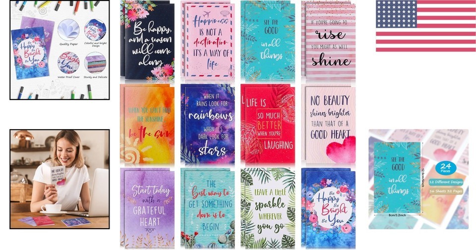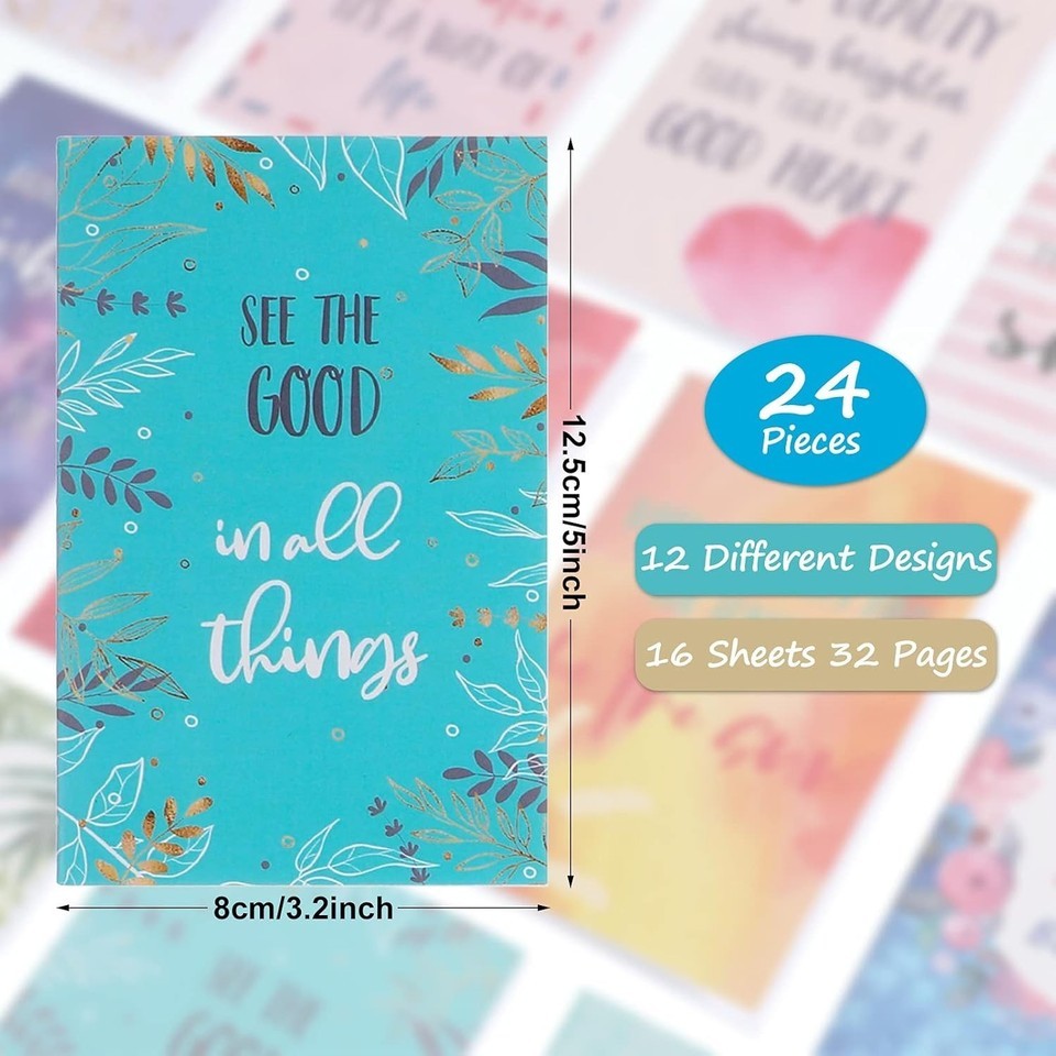 Package includes 24 pieces of mini inspirational notebooks.