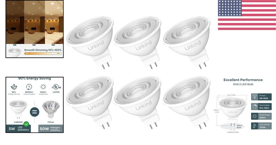 Exceptional Light Quality: With 500 lumens output and a soft white color temperature of 2700K, experience vibrant colors without flickering or buzzing noises.
