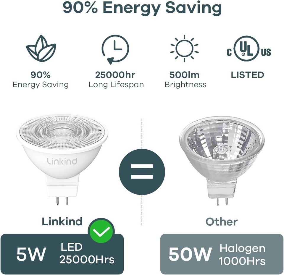 Energy Efficient: Consuming only 5 watts of energy yet offering the brightness equivalent to a traditional 50-watt halogen bulb, with a lifespan of up to 25,000 hours.