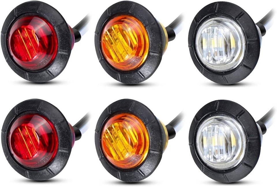 6 Pcs Trailer Side Marker 3/4 Round LED Lights 12V Front/Rear Amber Red White w/Grommets