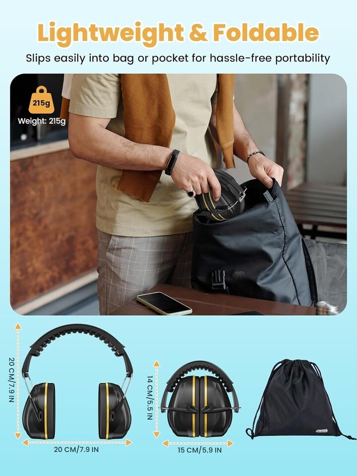 Professional Safety Ear Muffs - 31dB SNR Hearing Protection, Adjustable Noise Reduction Earmuffs for Adults Kids, Black/Yellow