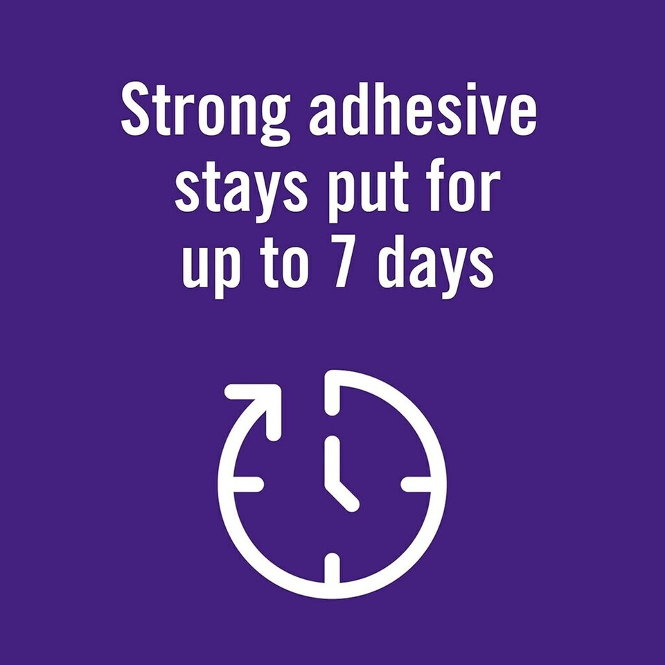 Strong adhesive that stays put for up to 7 days.