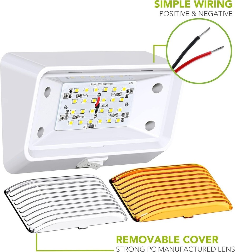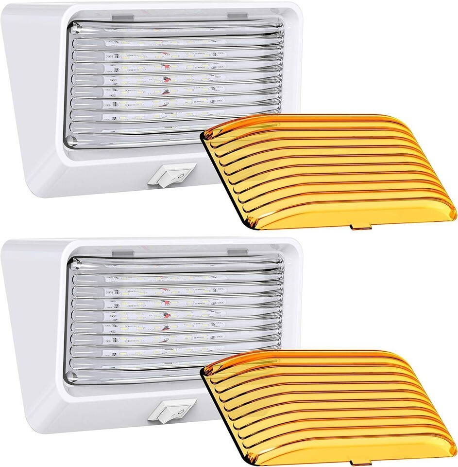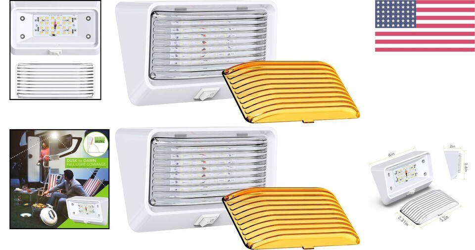 280 Lumen LED RV Porch Utility Light - 2-Pack with On/Off Switch & Amber Lens
