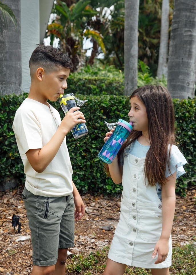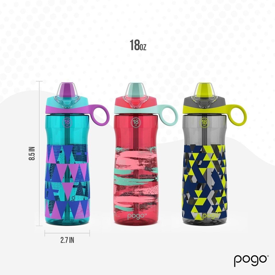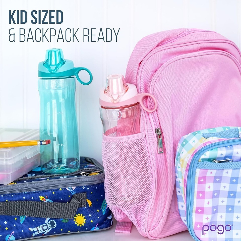 Kids Water Bottle with Straw, 18 oz BPA-Free Plastic, Leak-Proof with Carry H...