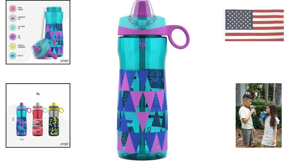 Kids Water Bottle with Straw, 18 oz BPA-Free and similar items