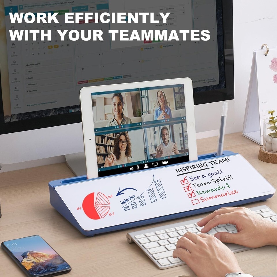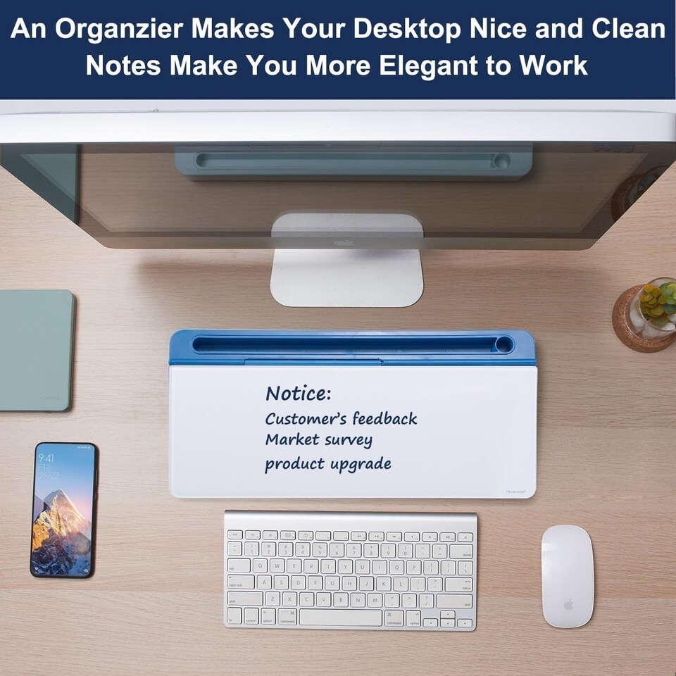 Perfect Design: Maximize your work area with a whiteboard designed to seamlessly fit between your keyboard and monitor.