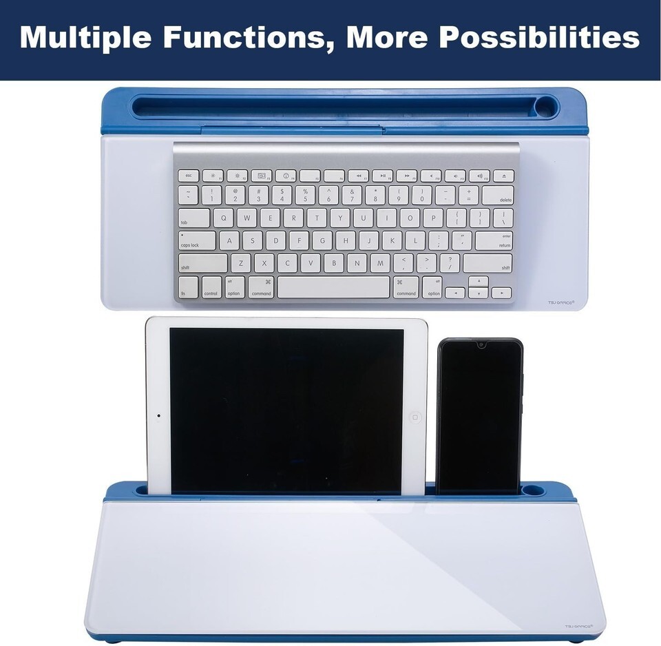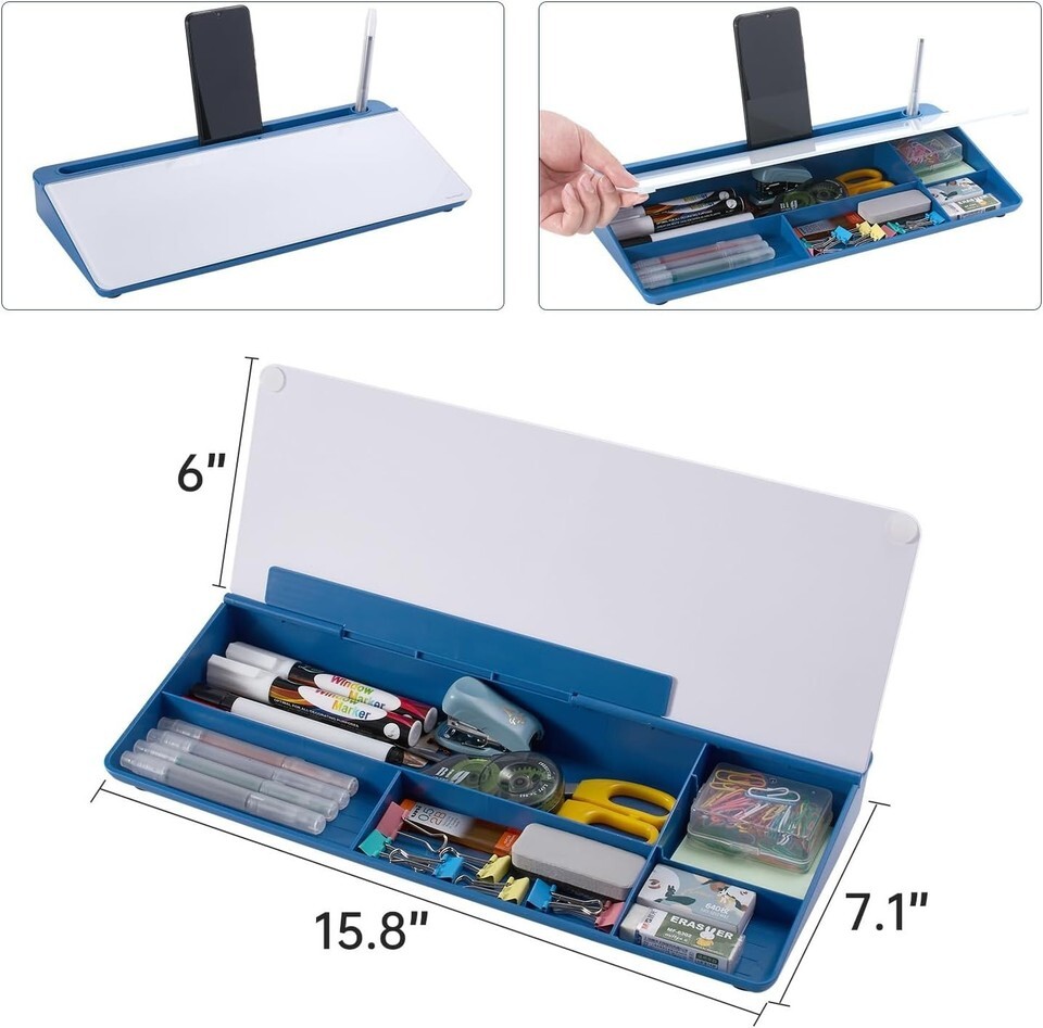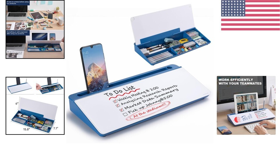 Features: Portable,Desktop whiteboard,Keyboard stand,Slope angled design,Smooth writing surface,Easy to wipe clean,Hidden storage,Accessory tray,Top tray for pad/mobile,Clutter reducing,Multi-functional,Durable,Lightweight