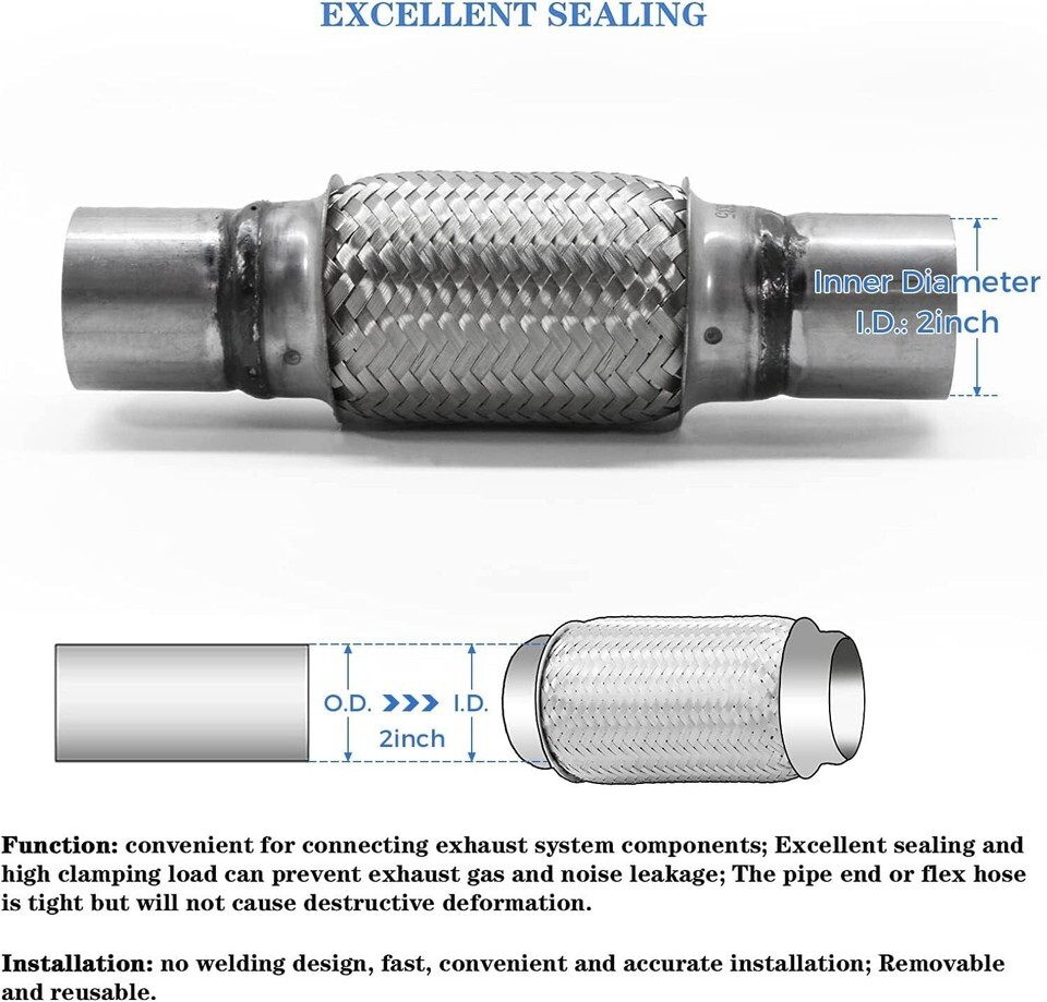 Experience unparalleled quality and reliability - upgrade your exhaust system today with our 2" x 6" Heavy Duty Stainless Steel Exhaust Flex Pipe!