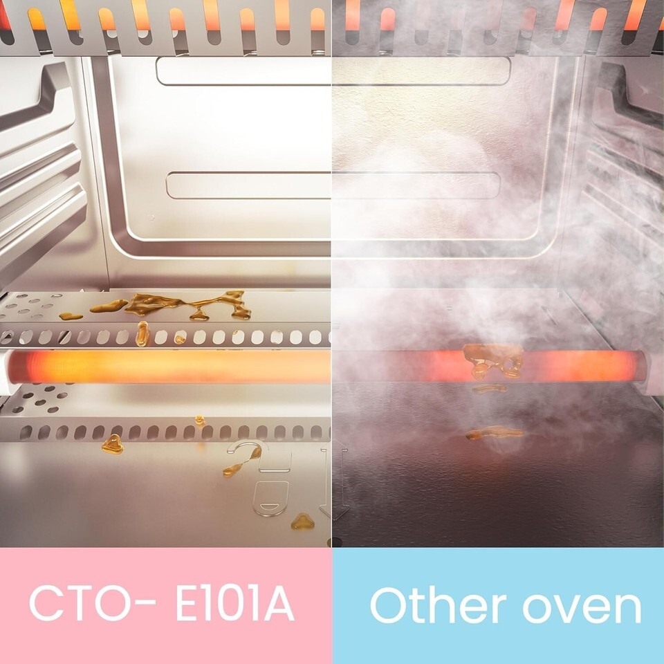 Includes 3 useful accessories: Non-stick baking rack, baking pan, and detachable crumb tray.