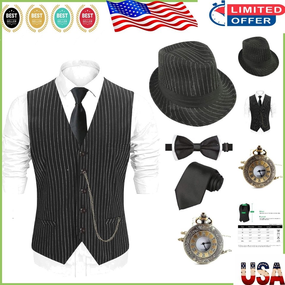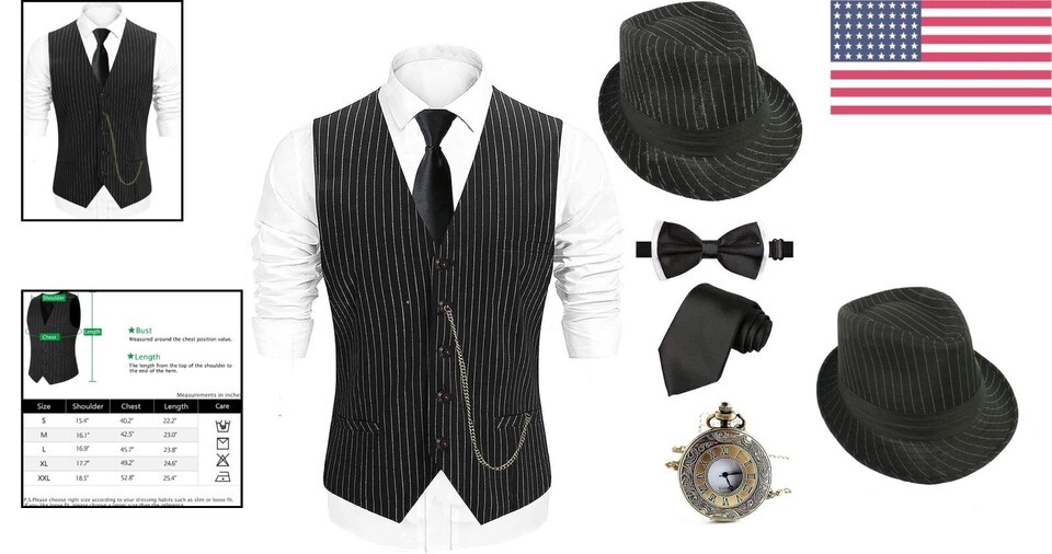 Indulge in the allure of the decade and make a statement at your next event with the 1920s Men's Fedora Hat Great Gatsby Vest Set. Order yours today and prepare to take on the dance floor in style!