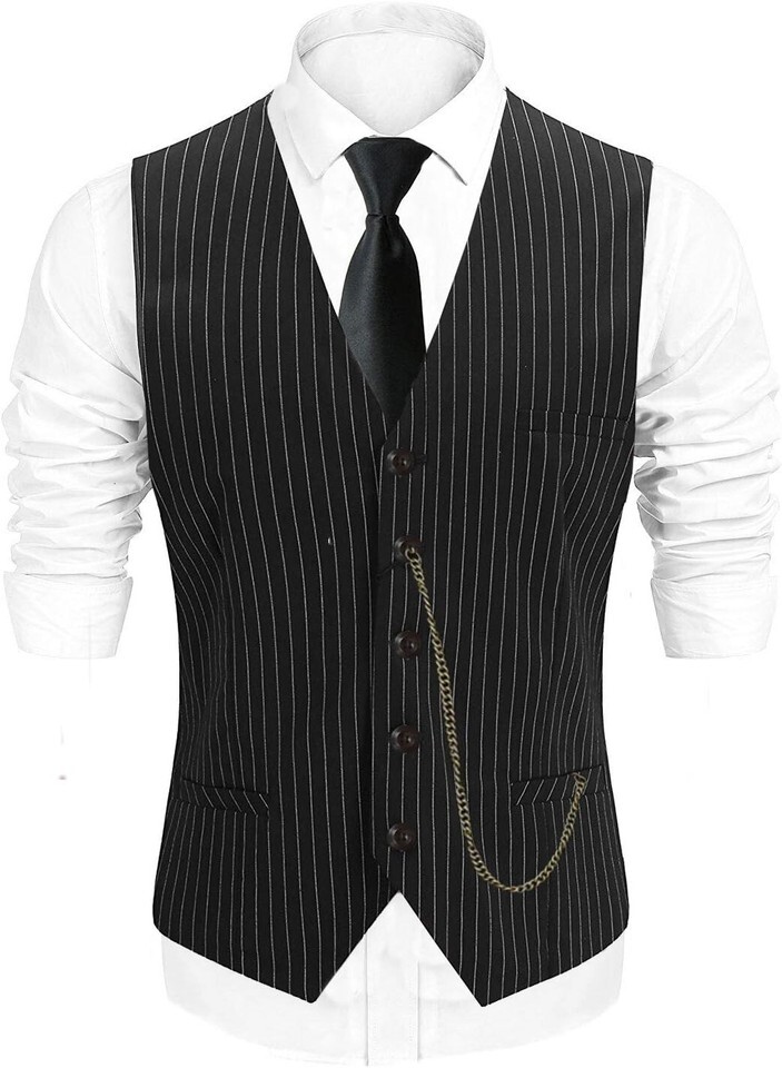 Distinctive Vest: The stripe vest boasts a classic shape with buttons down the front, perfectly pairing with the other elements of your costume.