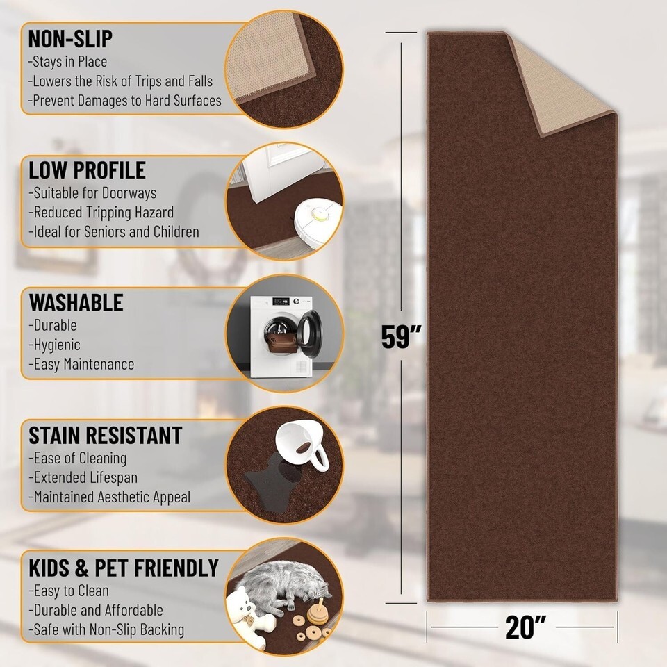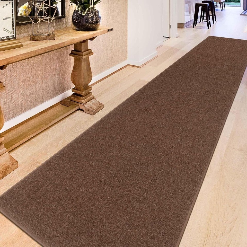 Ultra-Thin Non-Slip Solid Brown Runner Rug for High Traffic Areas 20