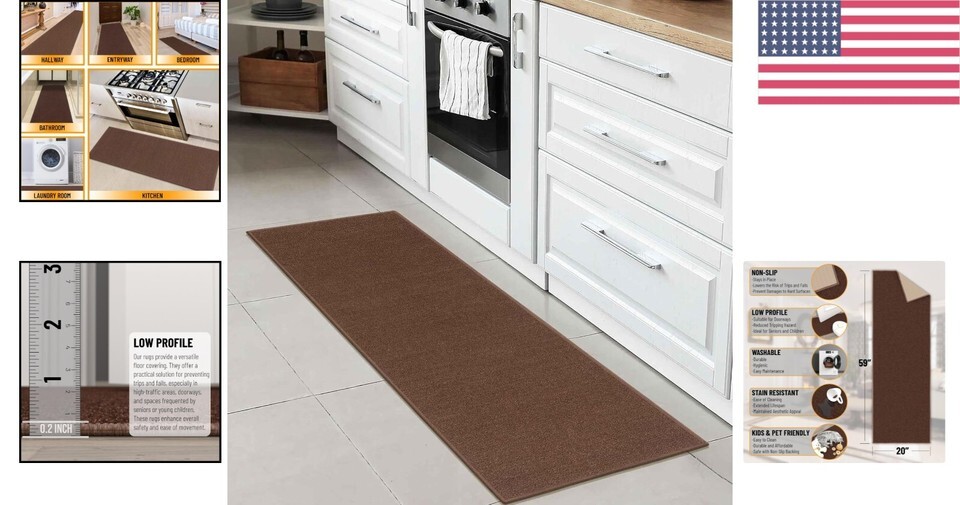 This Ultra-Thin Runner Rug combines functionality with refined aesthetics. Its elegant brown hue and low profile work harmoniously to enhance your home's decor while protecting your floors from wear and tear. Its durable, easy-care fabric is both stylish and practical, making it a go-to accessory for high-traffic spaces. Experience quality craftsmanship and modern design that cater explicitly to your lifestyle needs.