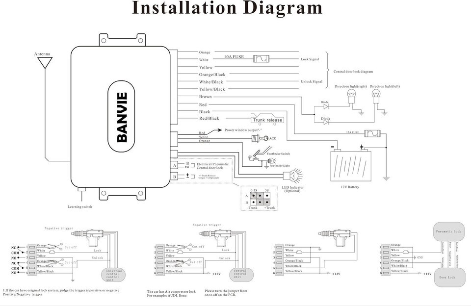 Features: Keyless Entry,Trunk Release,4 Button Remote Control,Central Door Locking,Remote Car Finder,Window Rolling Up Function,Automated Central Locking,Code Learning,Electrical Anti-Theft,Universal Fit for 12V DC Cars,Static Current of ?12mA,Working Voltage of 9-15V,Jumper for Output Options,Remote Control Functionality,LED Indication Lights,Parking Light Signals,Remote car finding,Universal specifications for DC 12V cars,Car locating function with parking light signals,Trunk option output settings (+/-),Code learning capability